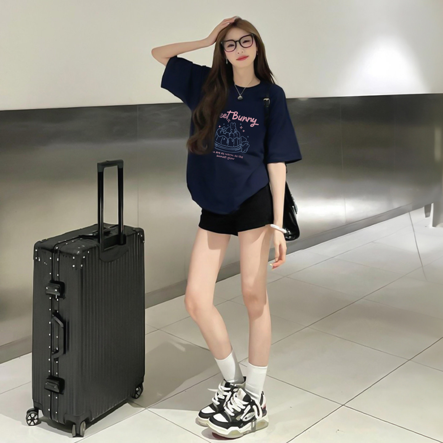 短袖女t恤夏2026新款爆款藏蓝色半袖百搭宽松纯棉绝美漂亮小上衣