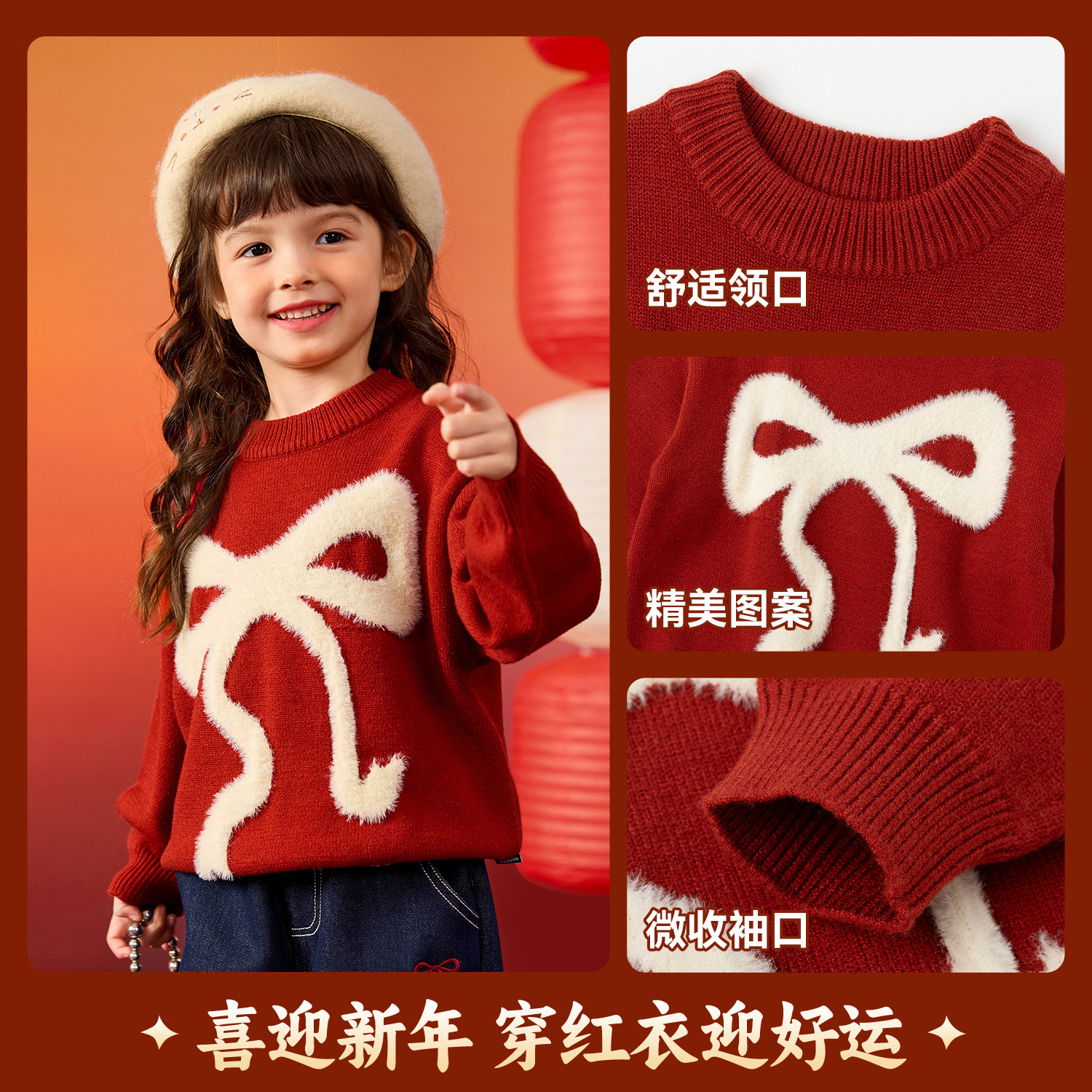 嘟嘟家女童毛衣红色女宝冬季拜年服女孩新年喜庆上衣宝宝洋气衣服