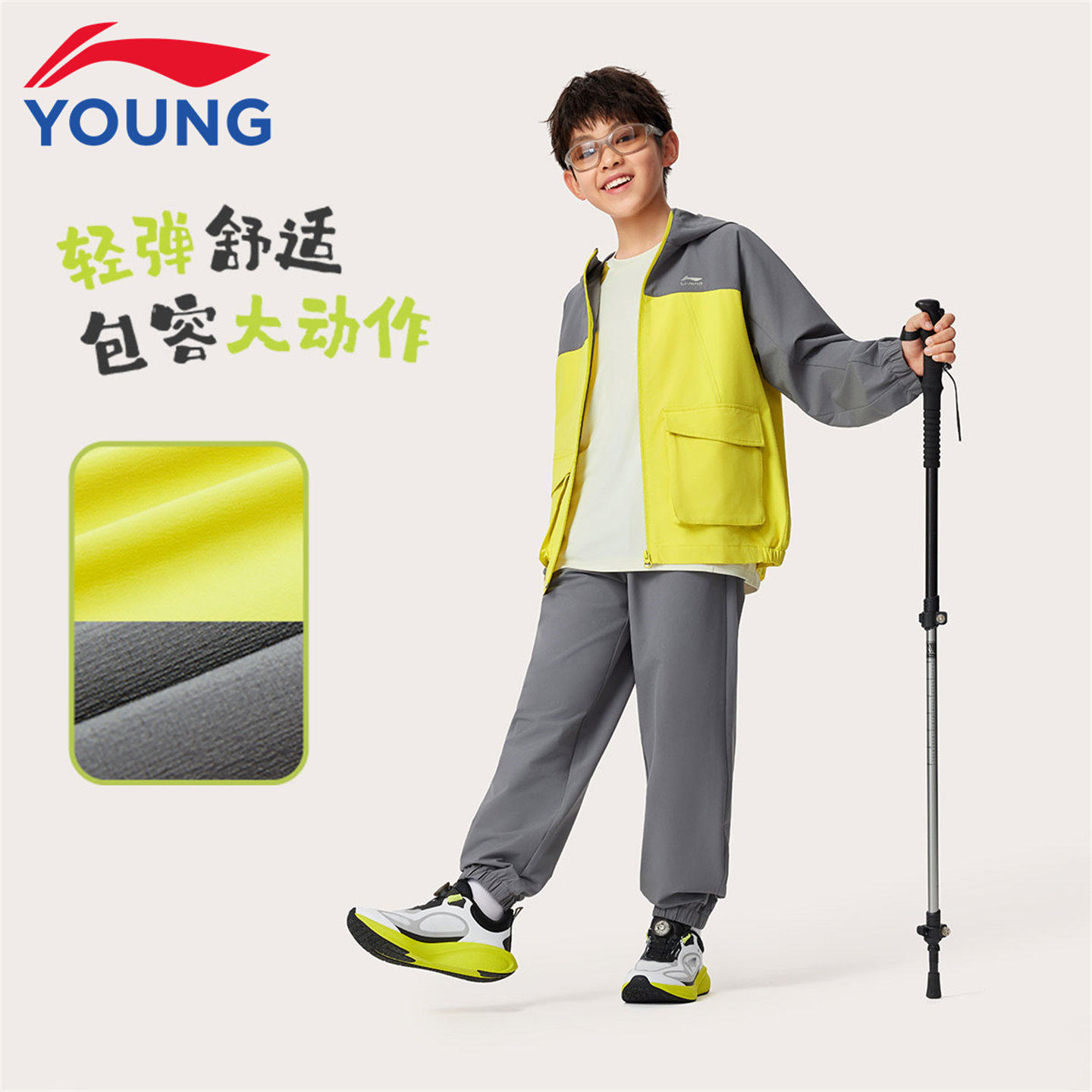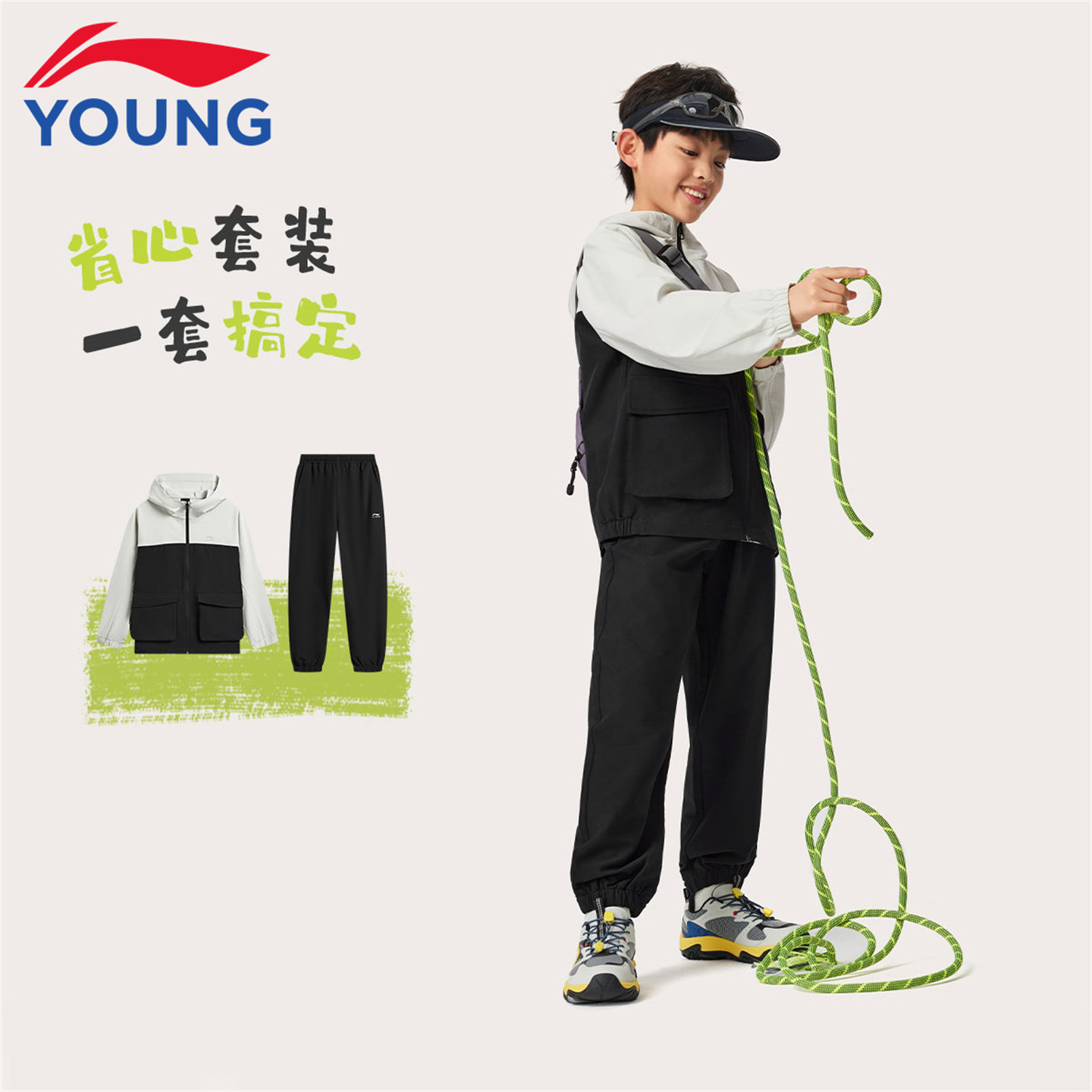 李宁儿童运动套装男童连帽外套2026春季新款户外撞色青少年裤子潮