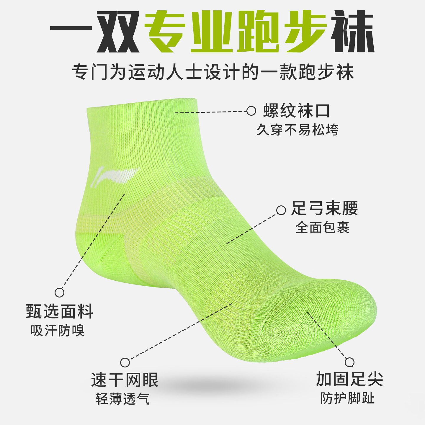 李宁跑步袜子专业马拉松运动袜加厚毛巾底吸汗透气男士短袜网球袜