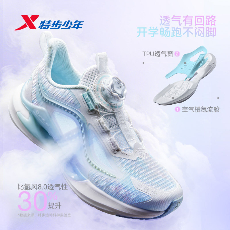 【梦想家】特步童鞋2026春季男童护足跑鞋网面旋钮扣女童运动鞋