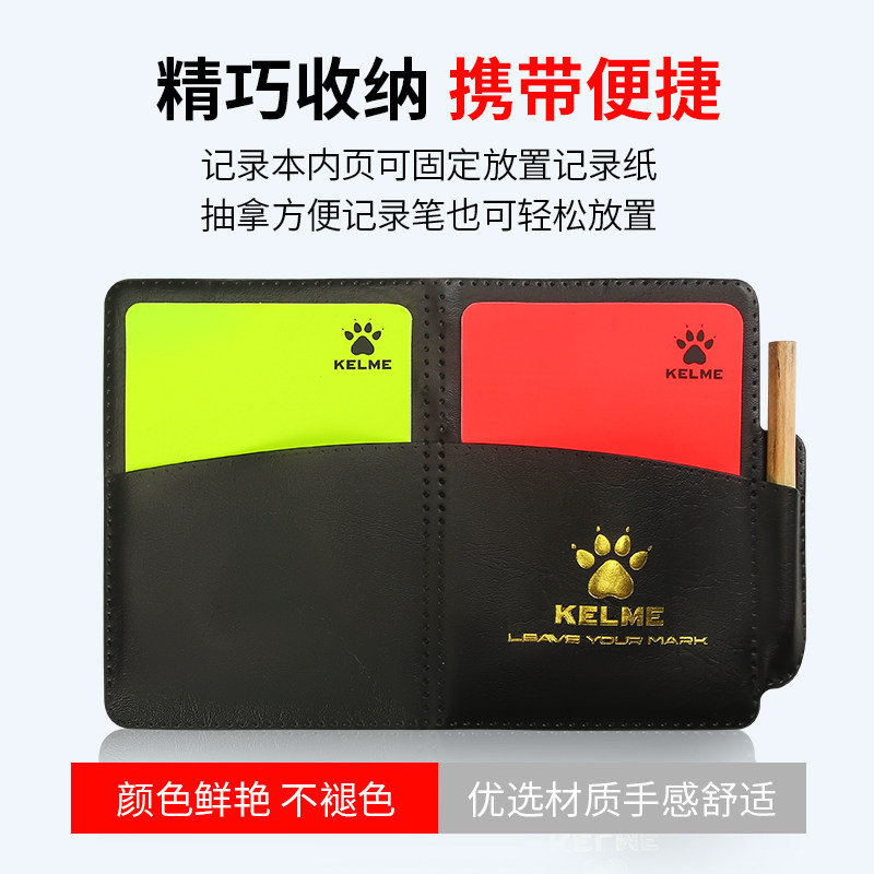 卡尔美红黄牌足球裁判用品比赛道具专业裁判员装备记录纸侧边带笔