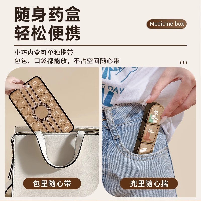 老年人分药盒一周七天便携药品分装盒吃药提醒一日三餐健忘小药盒