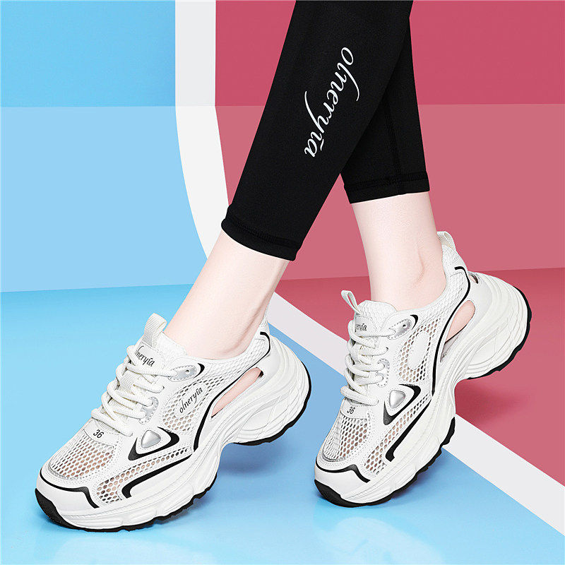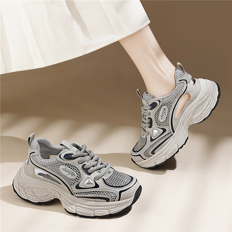 网面透气老爹鞋女款2026夏季新款薄款网鞋百搭厚底增高爆款小白鞋