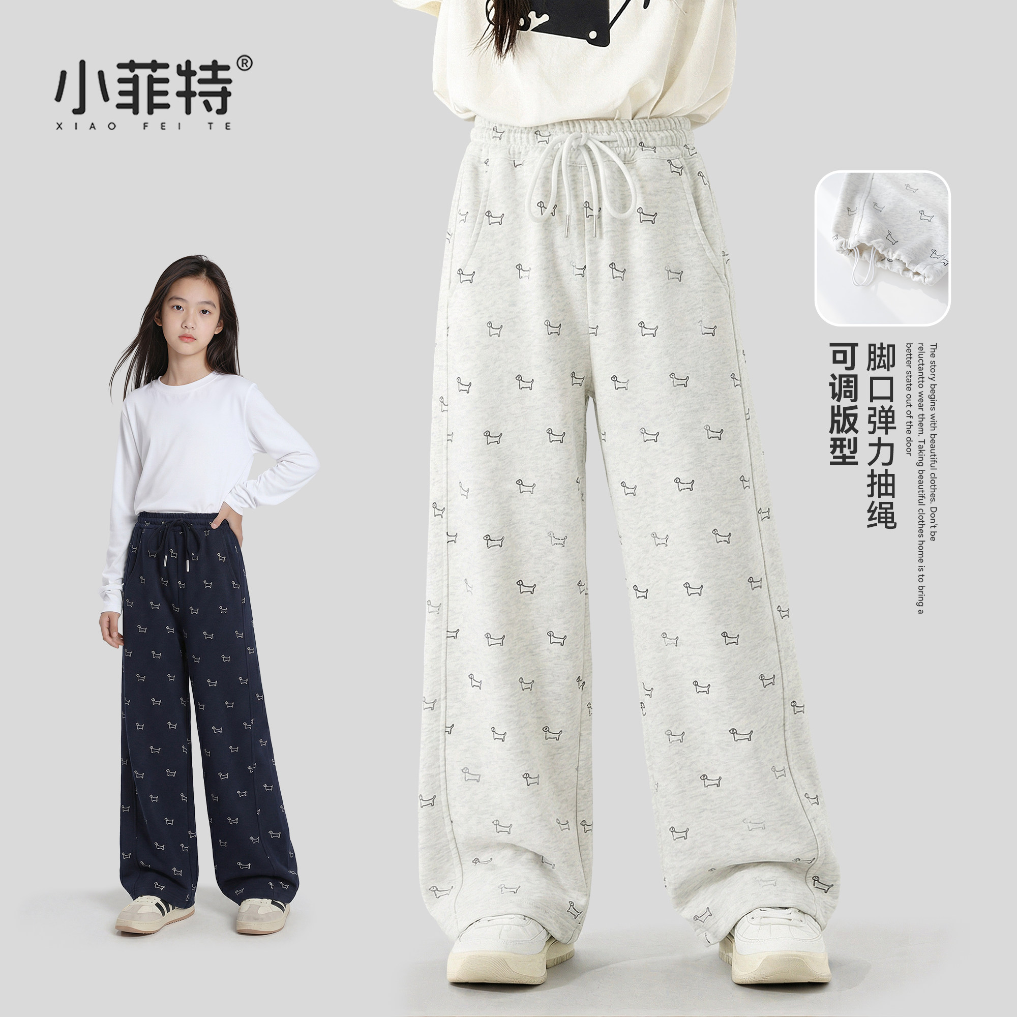 小菲特童装女童裤子春装薄款2026新款儿童独特超好看中大童运动裤
