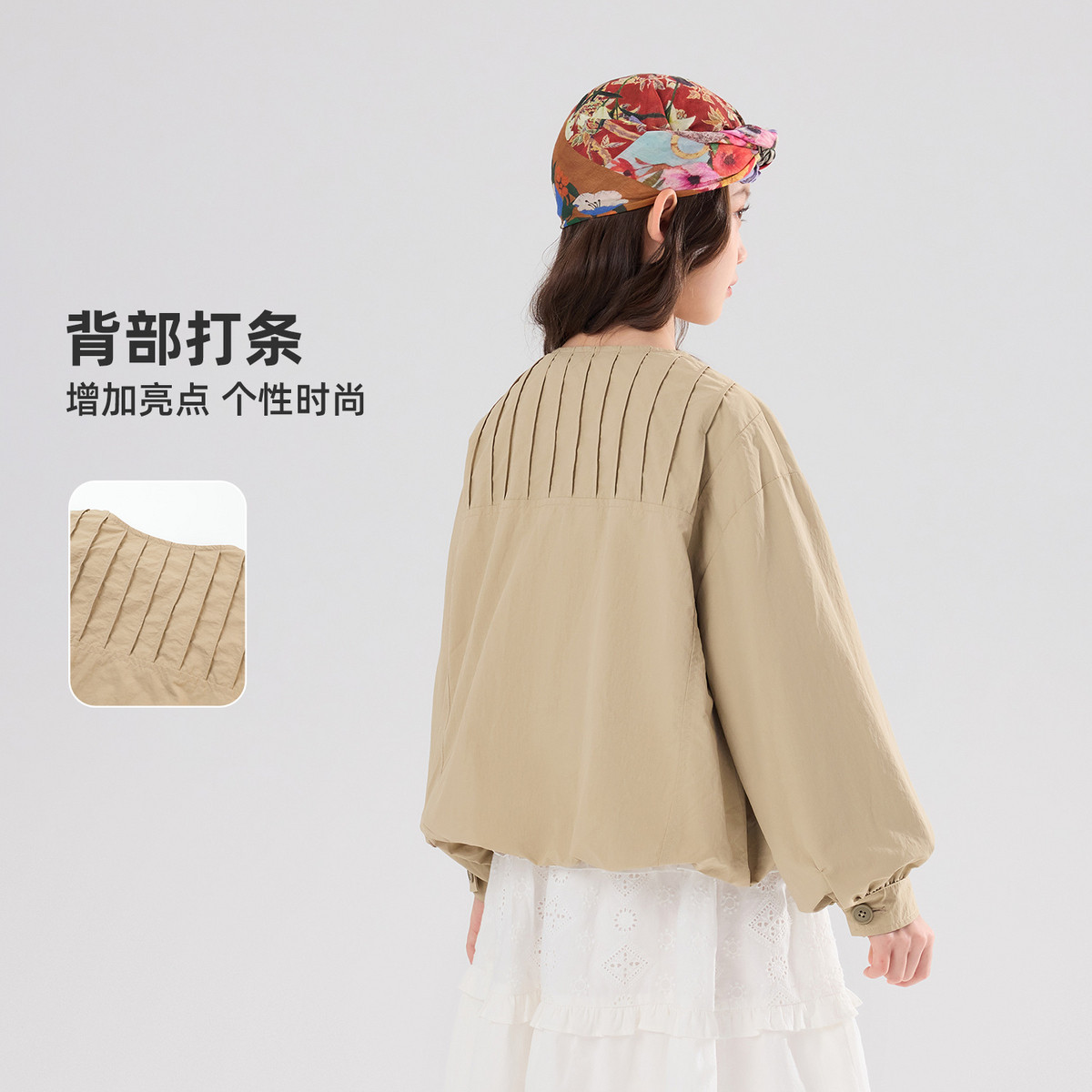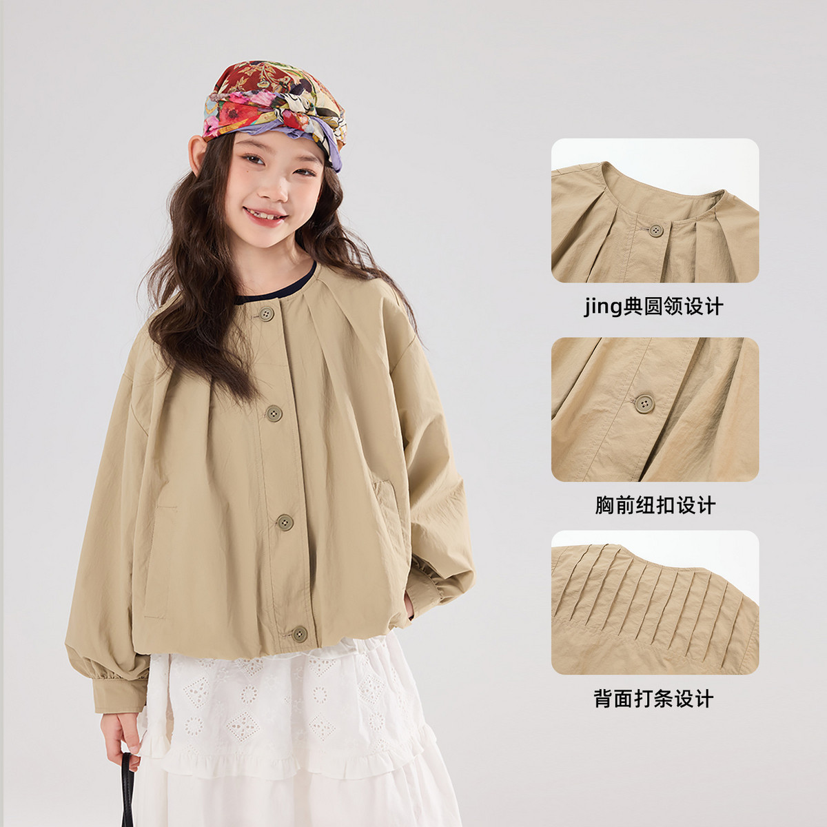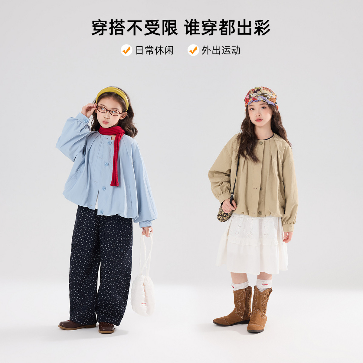 布丁哈鲁春装女童童装洋气上衣2026春季新款儿童小清新圆领外套