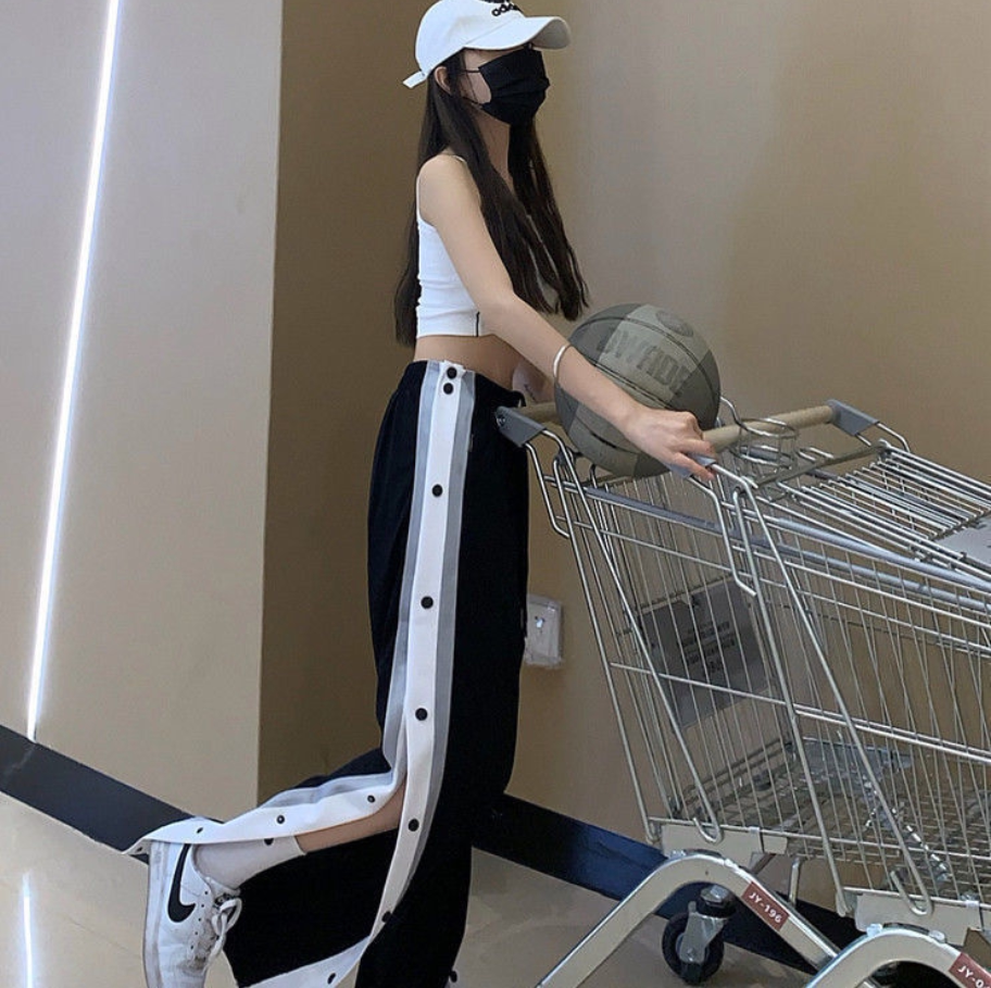 美式高街篮球排扣裤儿童夏季全开扣秒脱潮流运动长裤薄款训练裤子