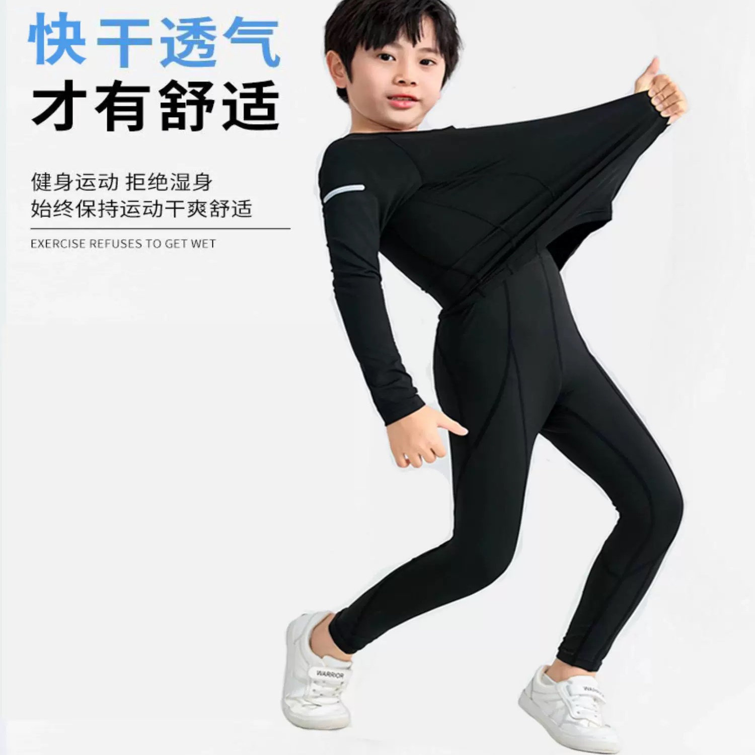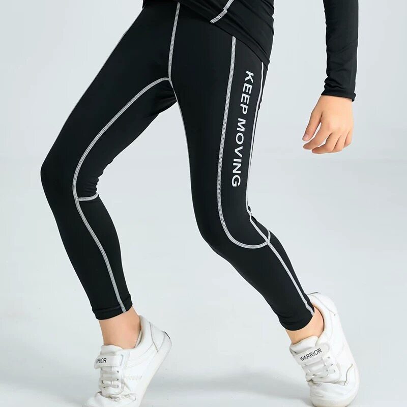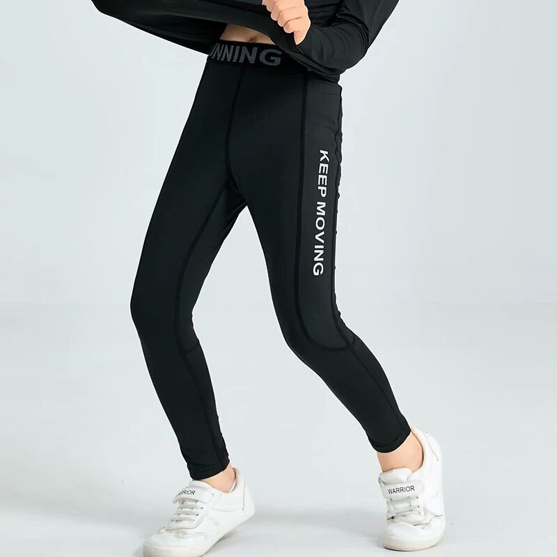 儿童紧身速干裤薄款男童女童健身裤跑步运动训练长裤篮球打底裤子