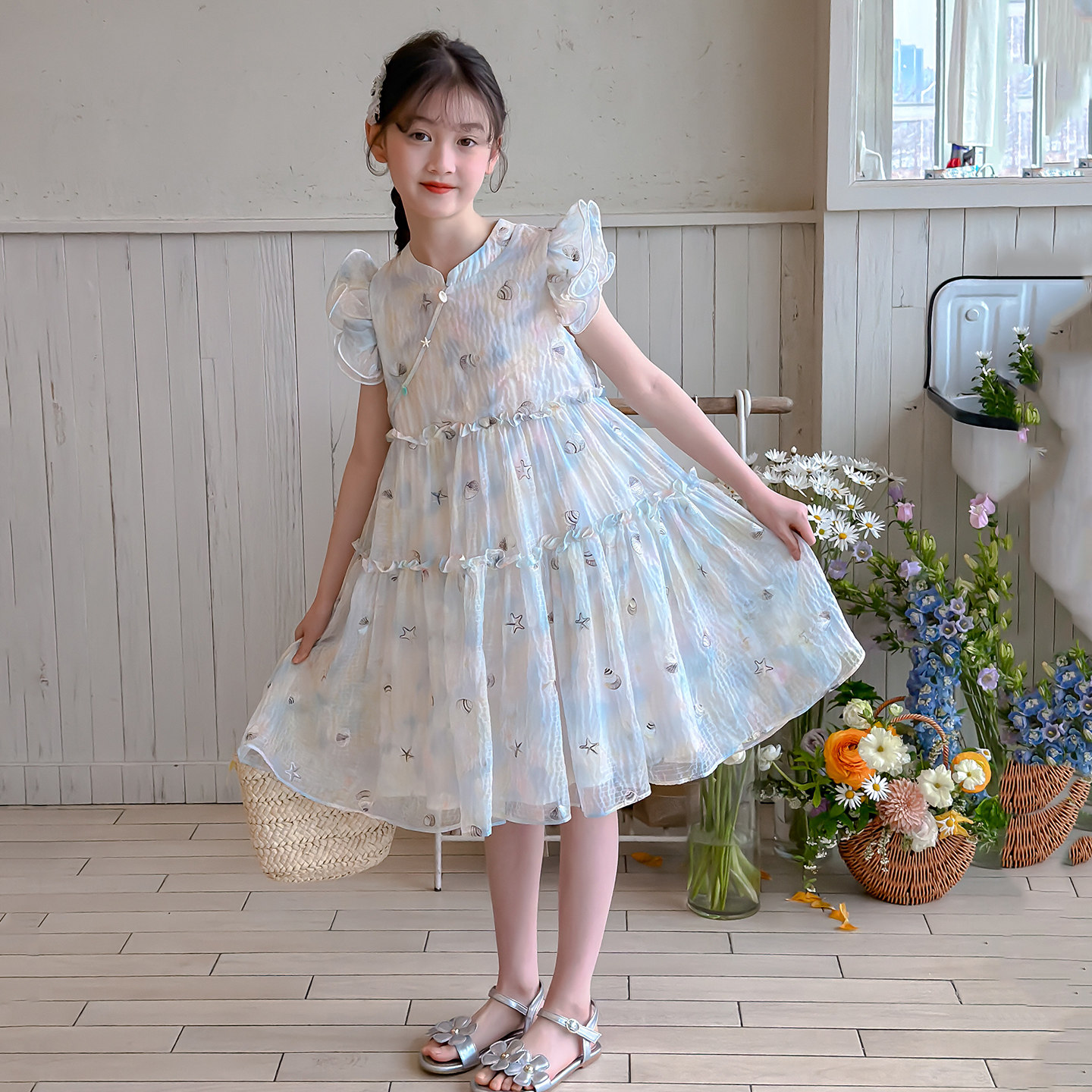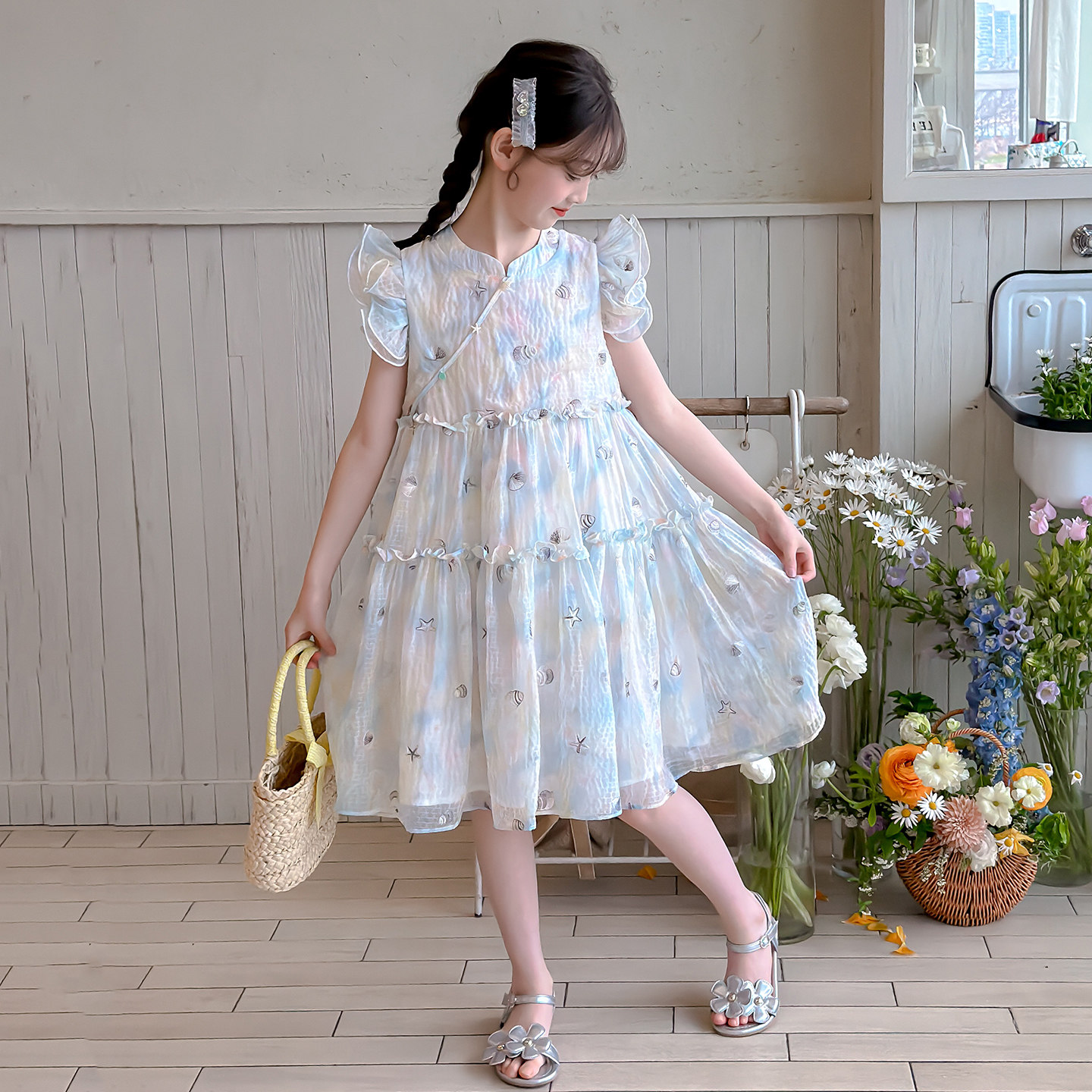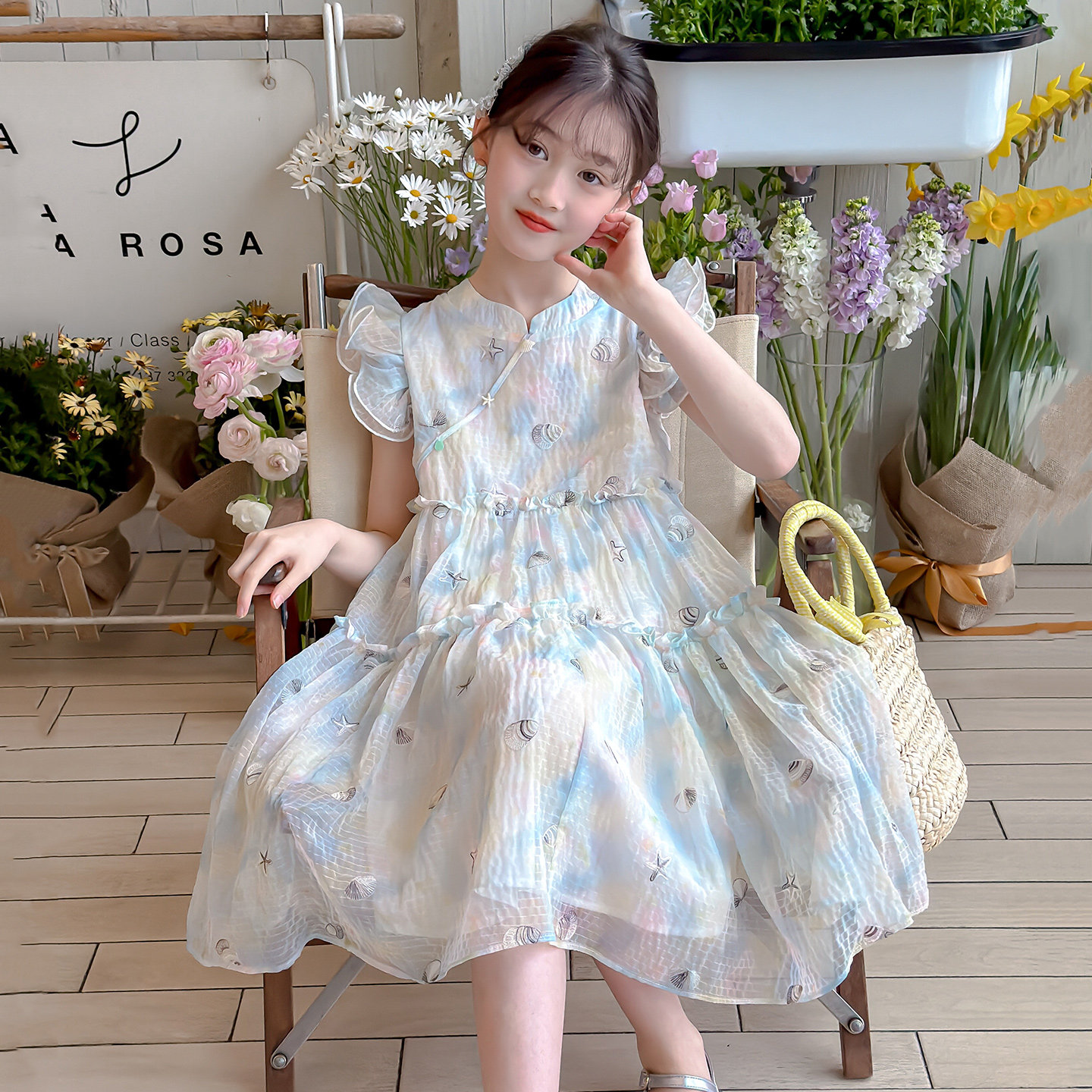 女童连衣裙夏季薄款2026新款夏装中国风小飞袖儿童裙子女孩连身裙
