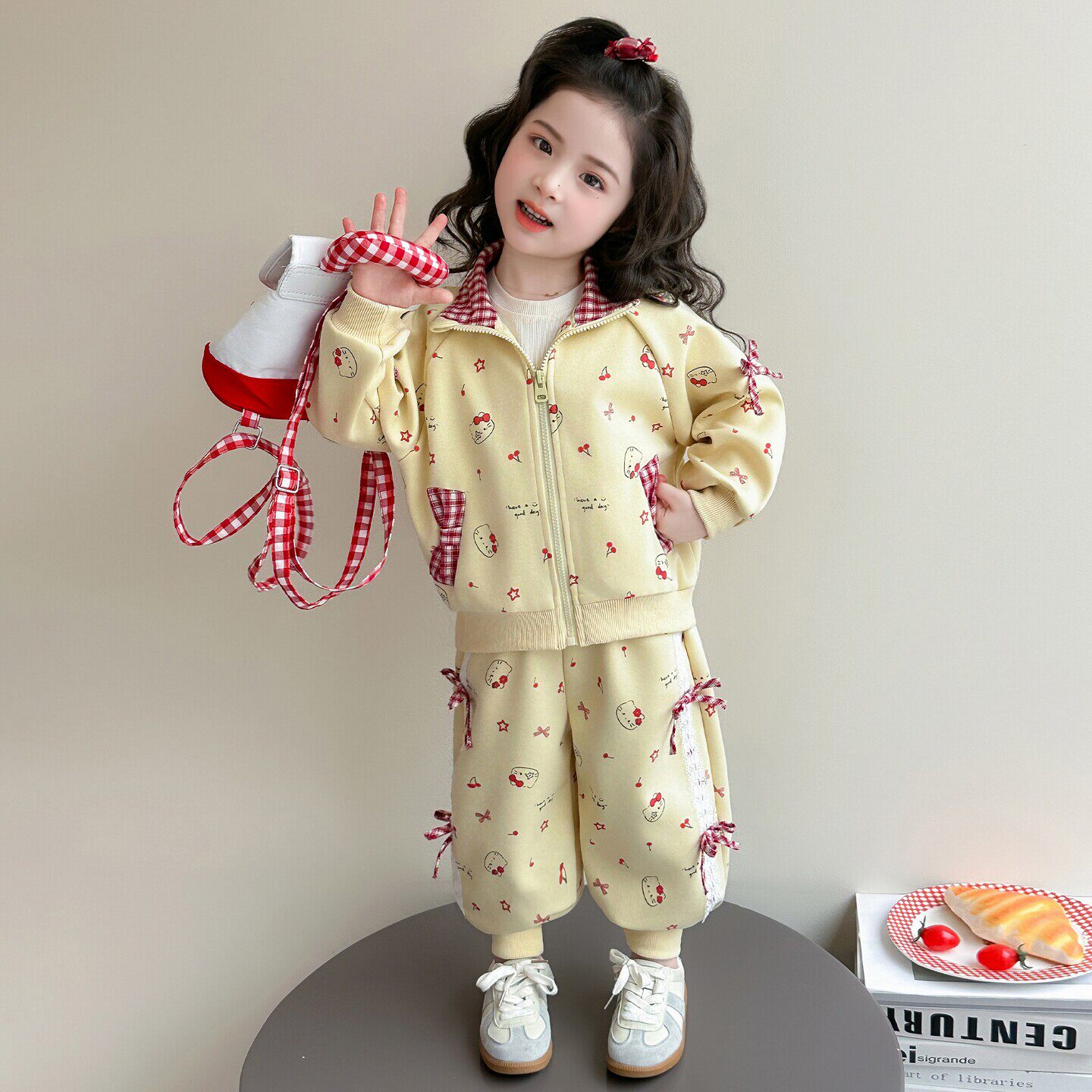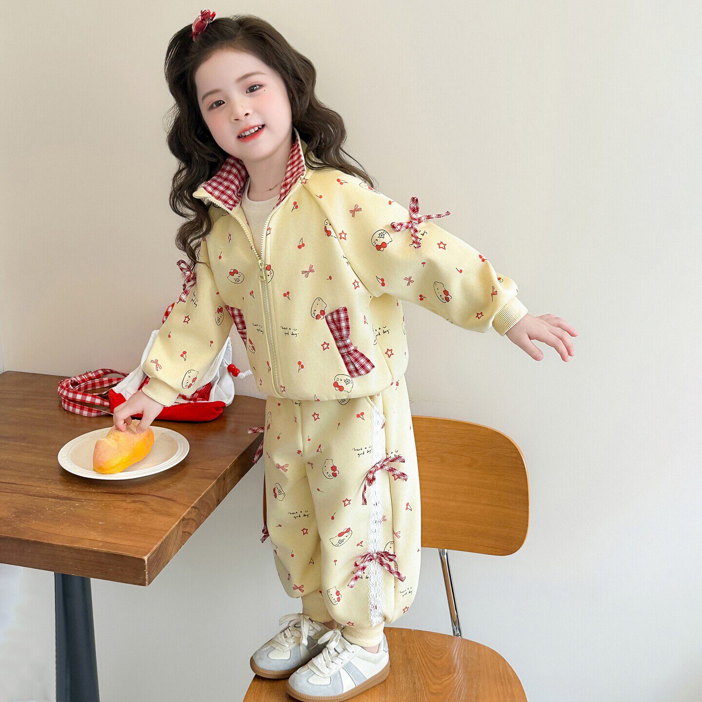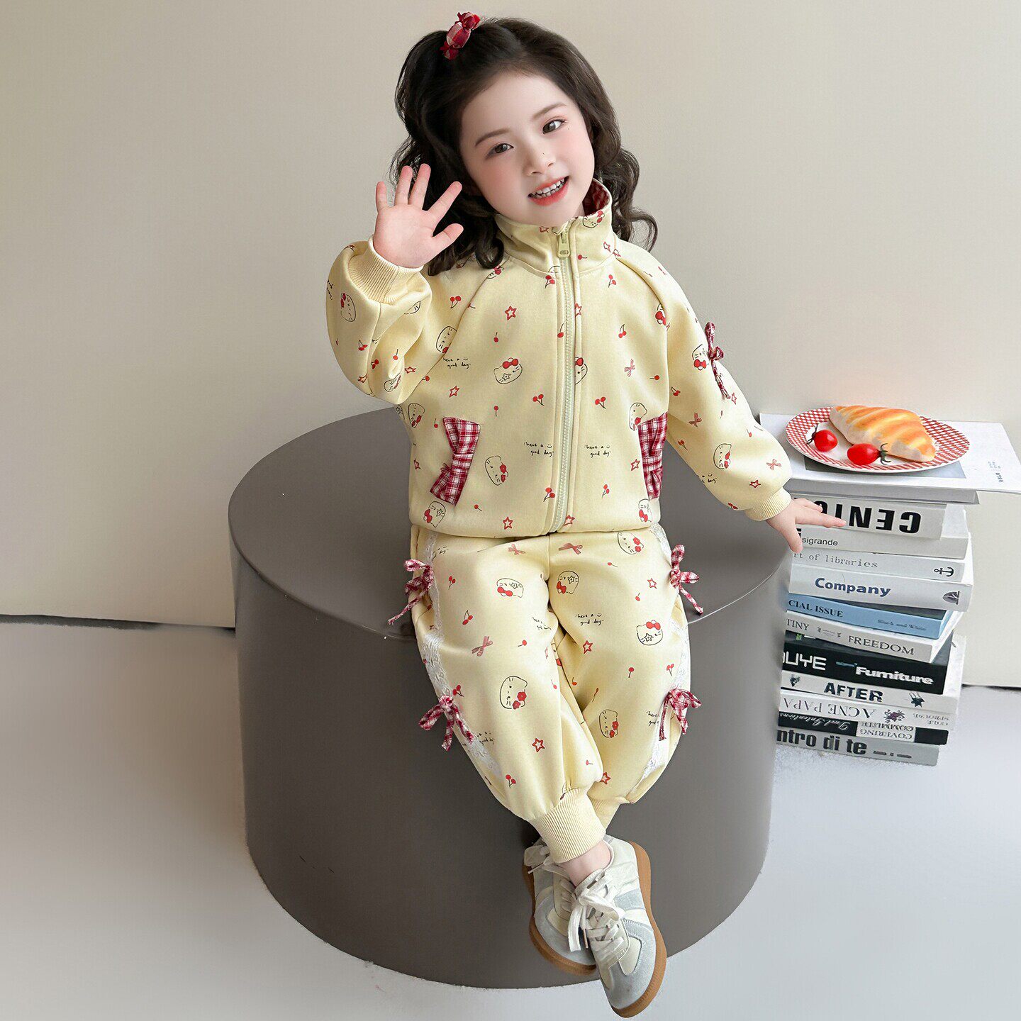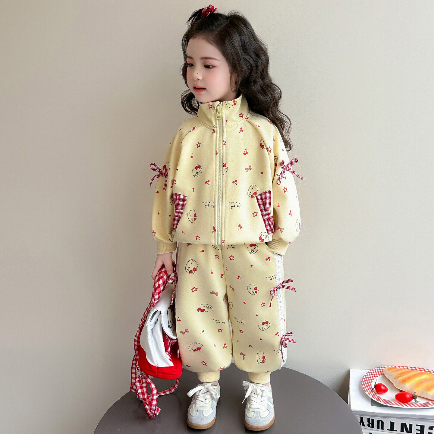 猫咪开衫时髦女春装套装拉链2026儿童春秋超蝴蝶结宝宝好看款女童