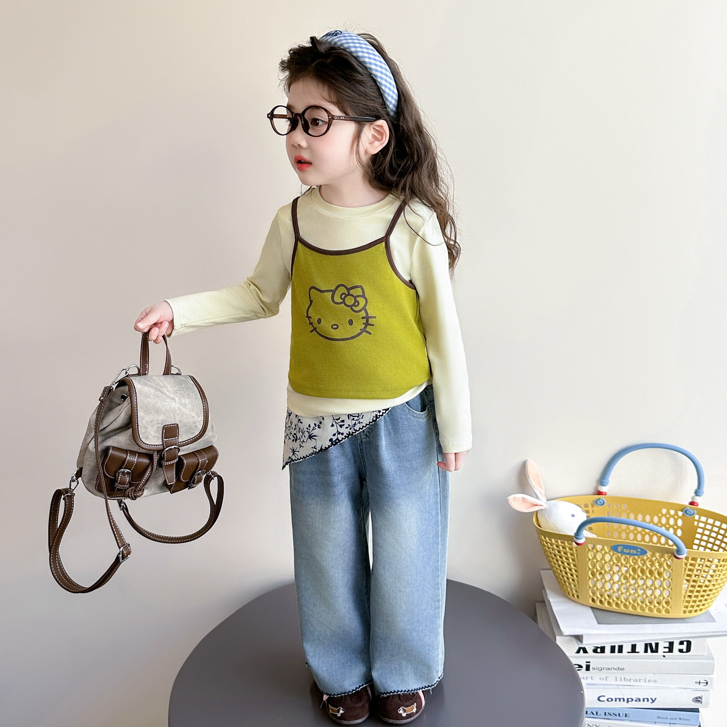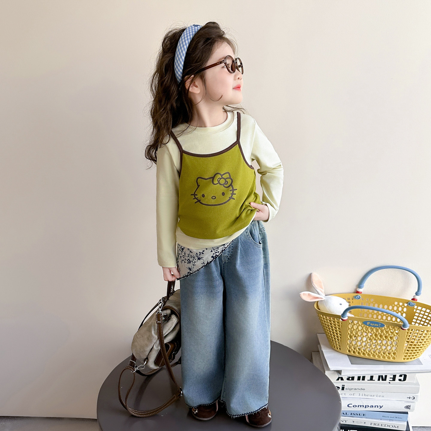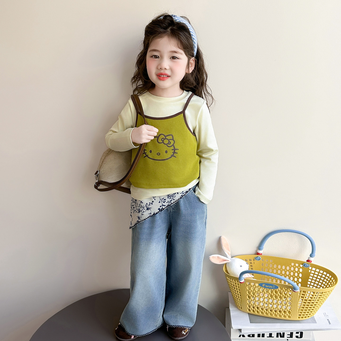 女童春秋款吊带套装2026新款洋气时髦儿童女宝宝春季春装早春猫咪