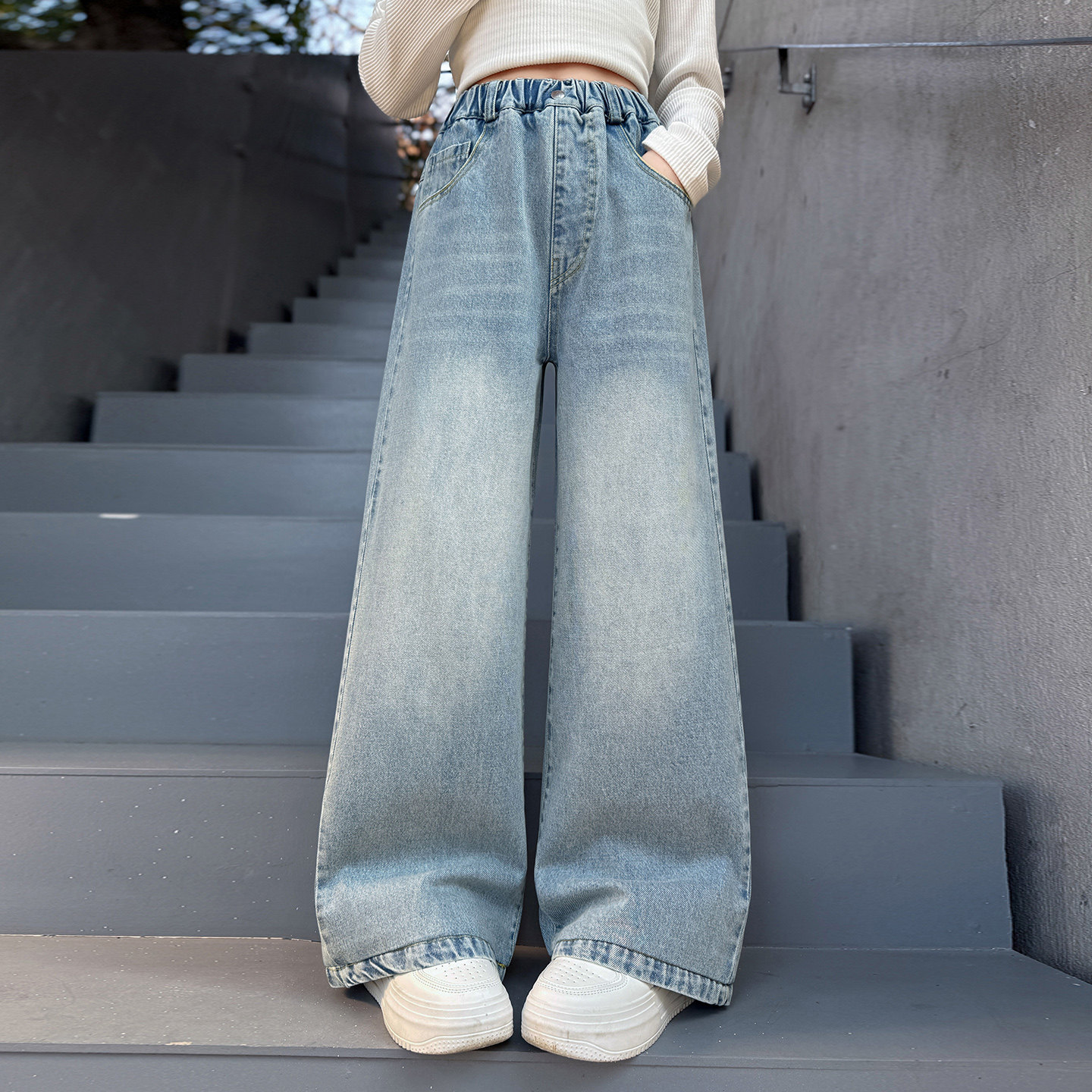 女童裤子春季外穿2026新款春装洋气时尚休闲窄版阔腿裤儿童牛仔裤