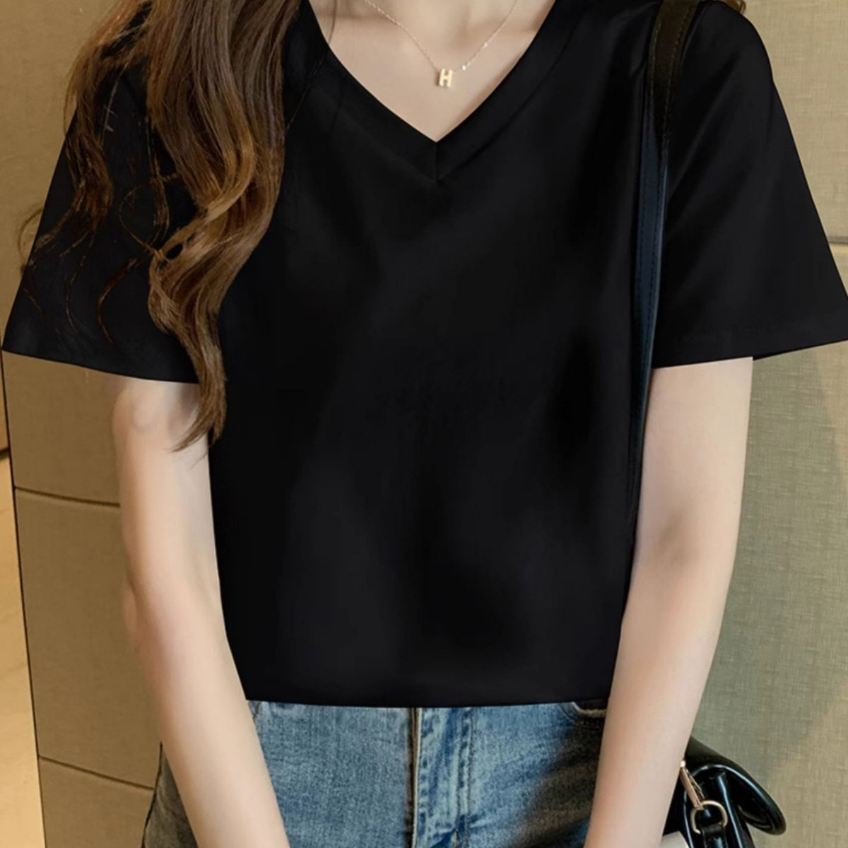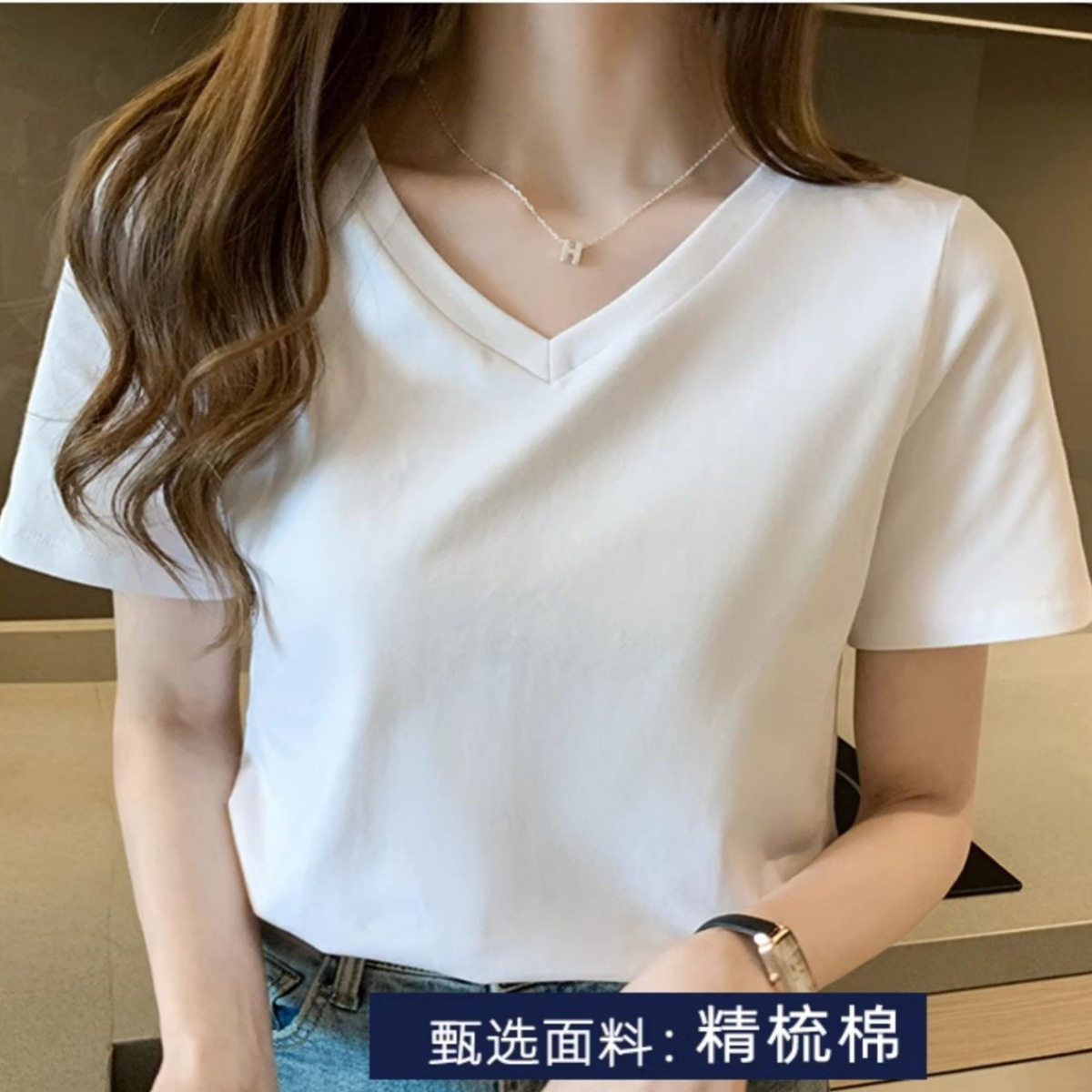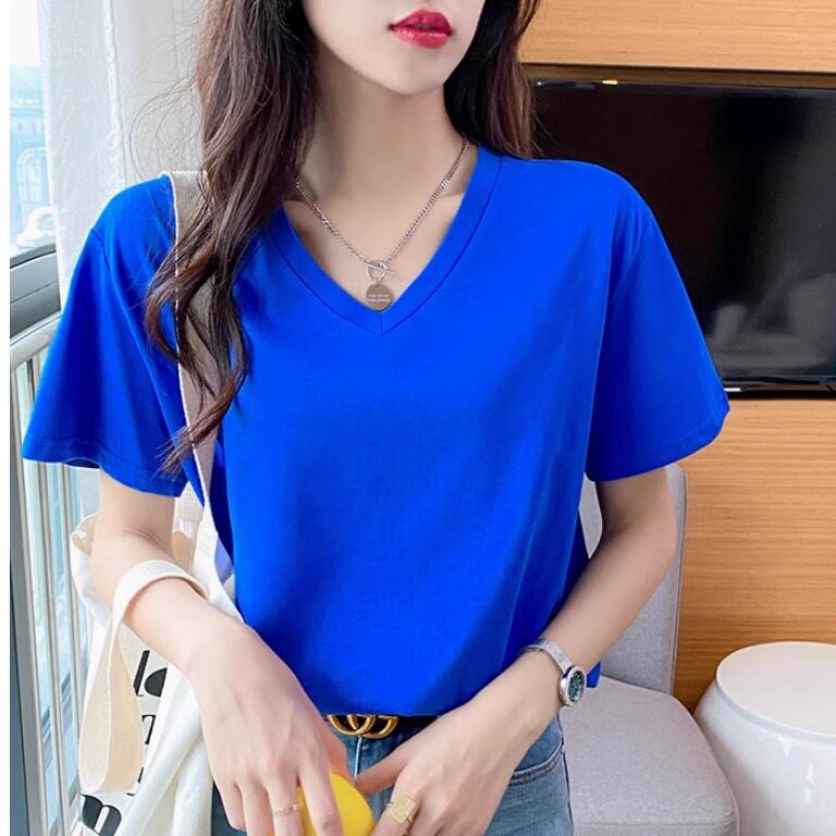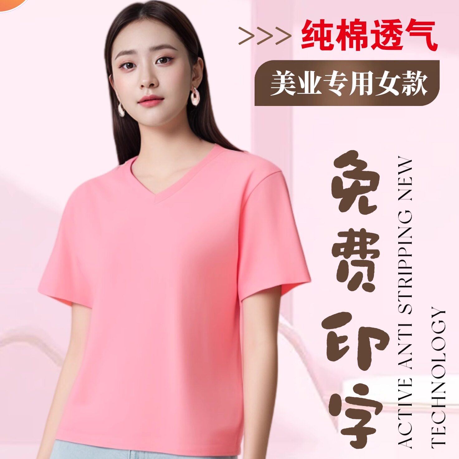 美容店工作服定制logo纯棉T恤印字文化衫短袖女员工V领上衣
