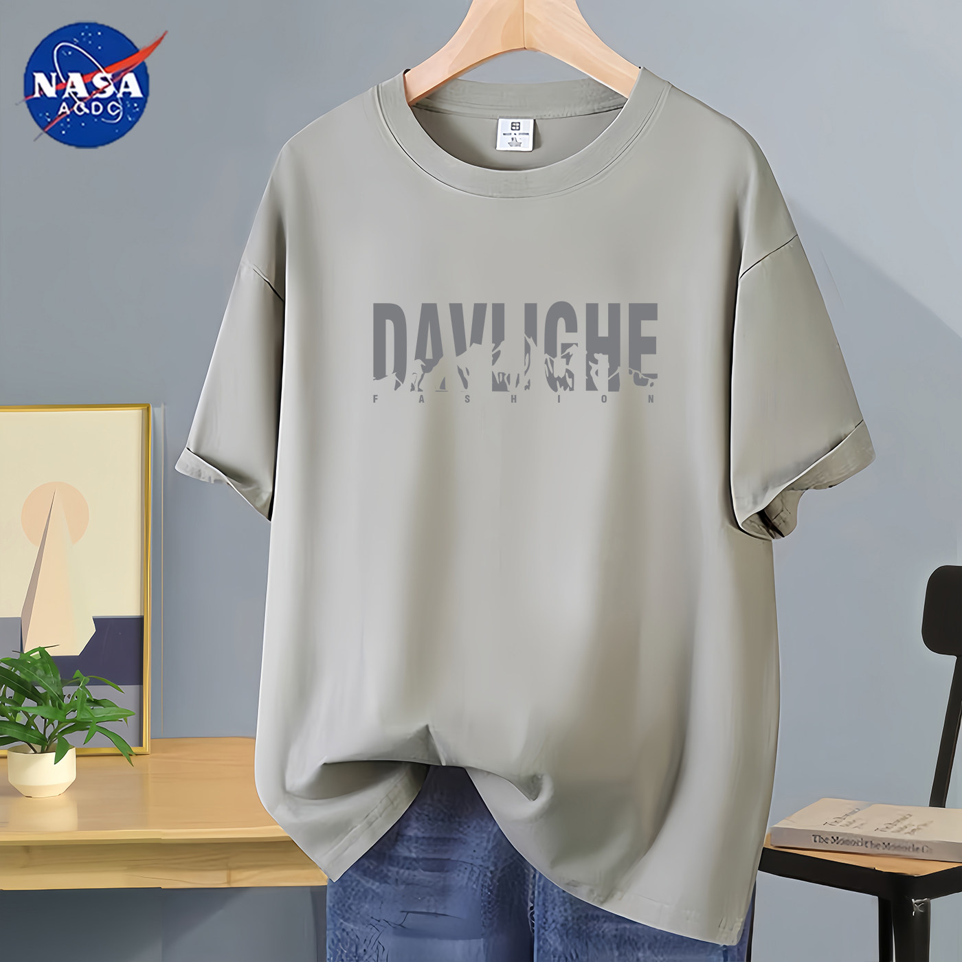 NASA联名短袖t恤男生2026新款夏季潮牌帅青少年纯棉宽松白色男款A