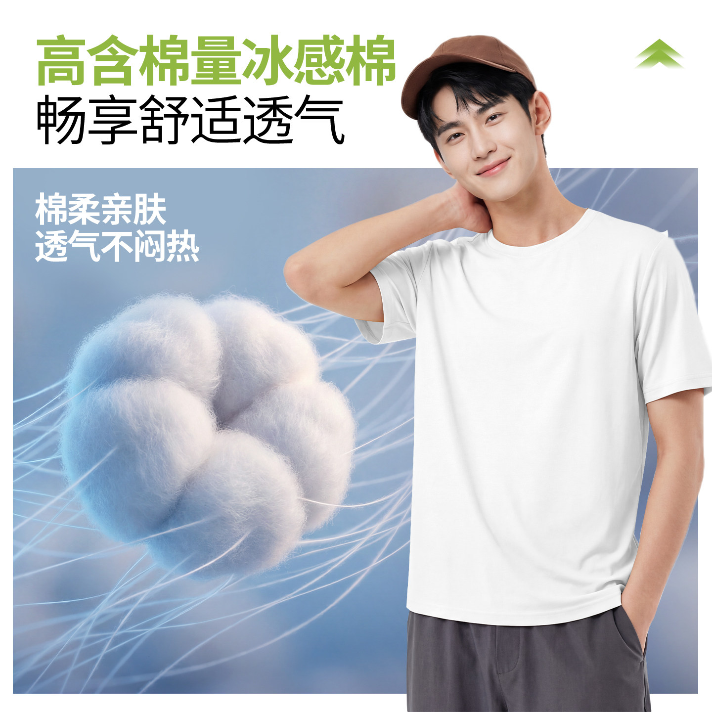 班尼路短袖男款2026新款青少年沙滩防晒冰丝透气棉柔t恤白色体恤A