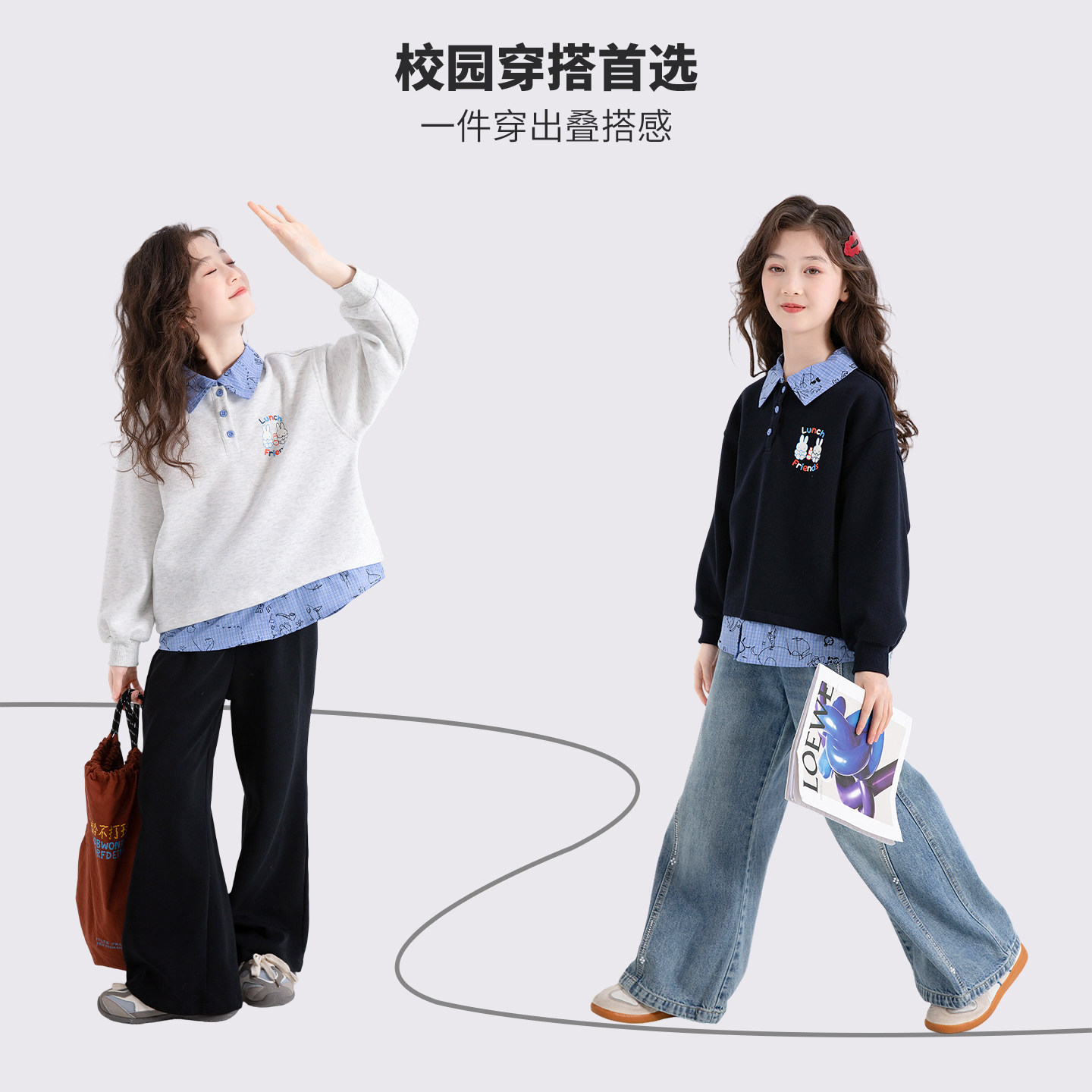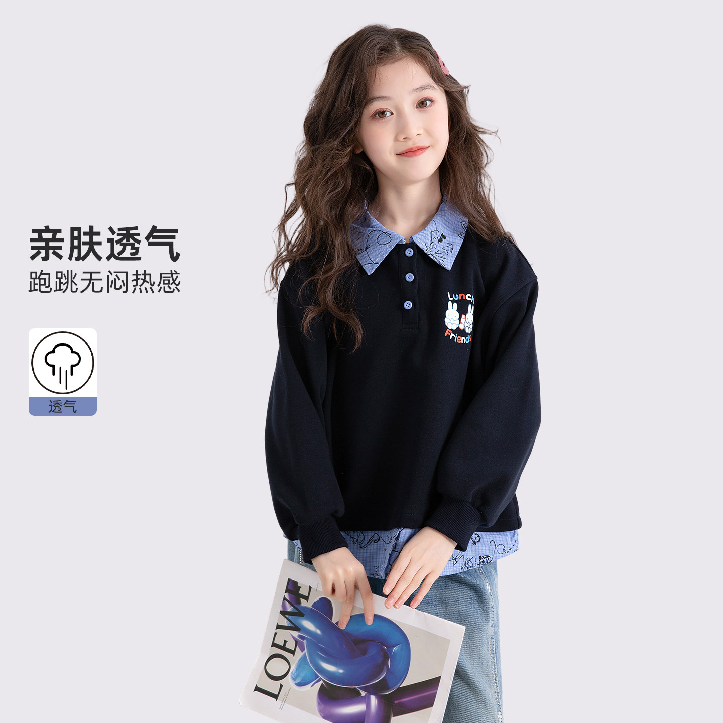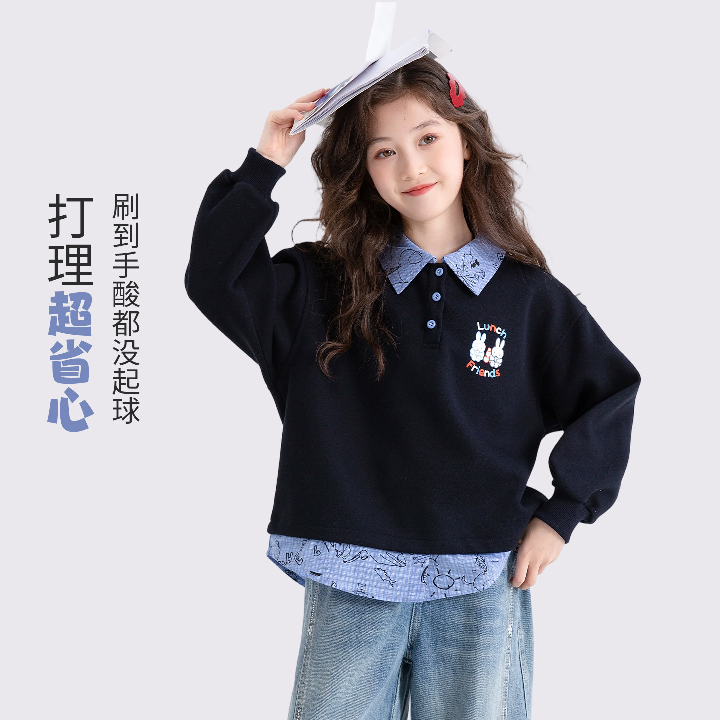 女童春装中大童翻领卫衣2026春季新款儿童休闲洋气时髦假两件上衣