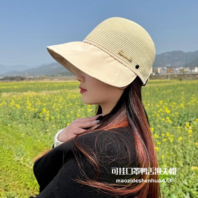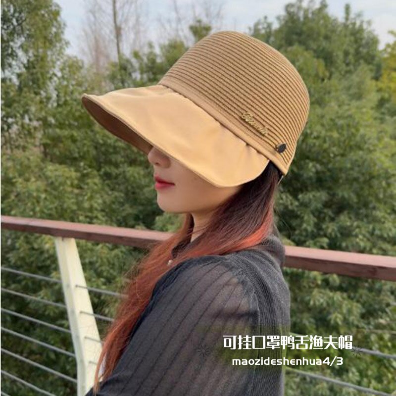 升级版可挂口罩鸭舌渔夫帽子女夏季防紫外线遮阳帽显脸小太阳帽女
