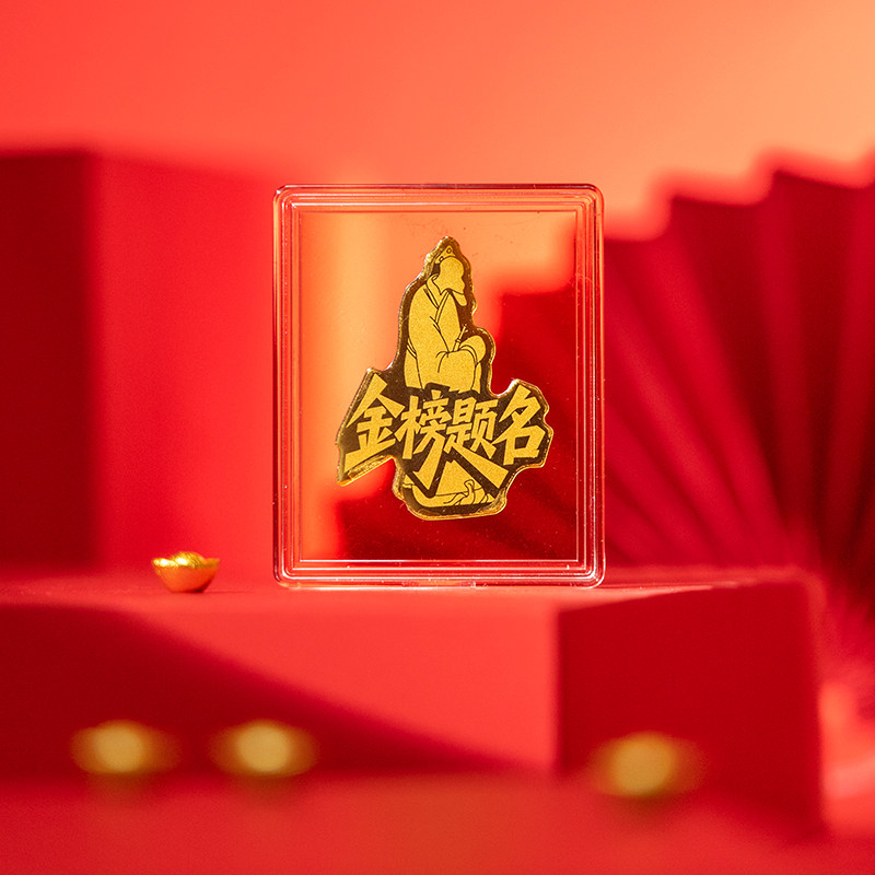孔子授业“金榜题名”足金999黄金手机贴带证书学业有成高考礼物