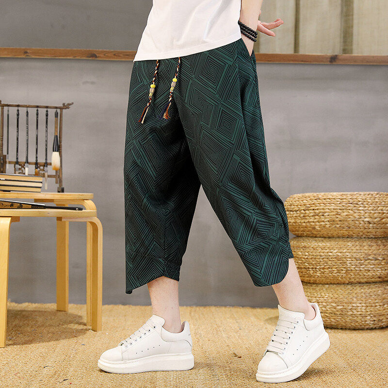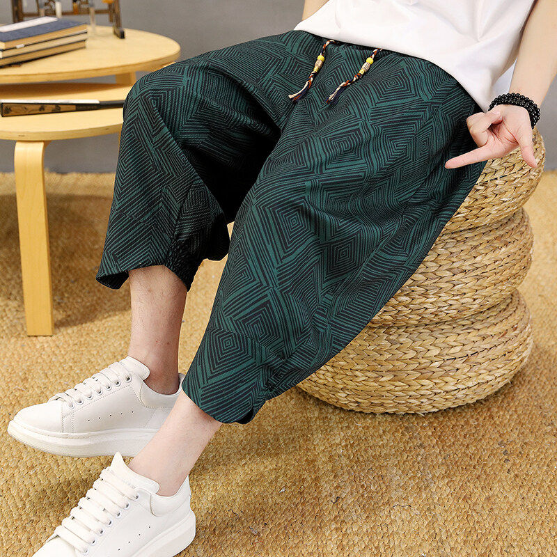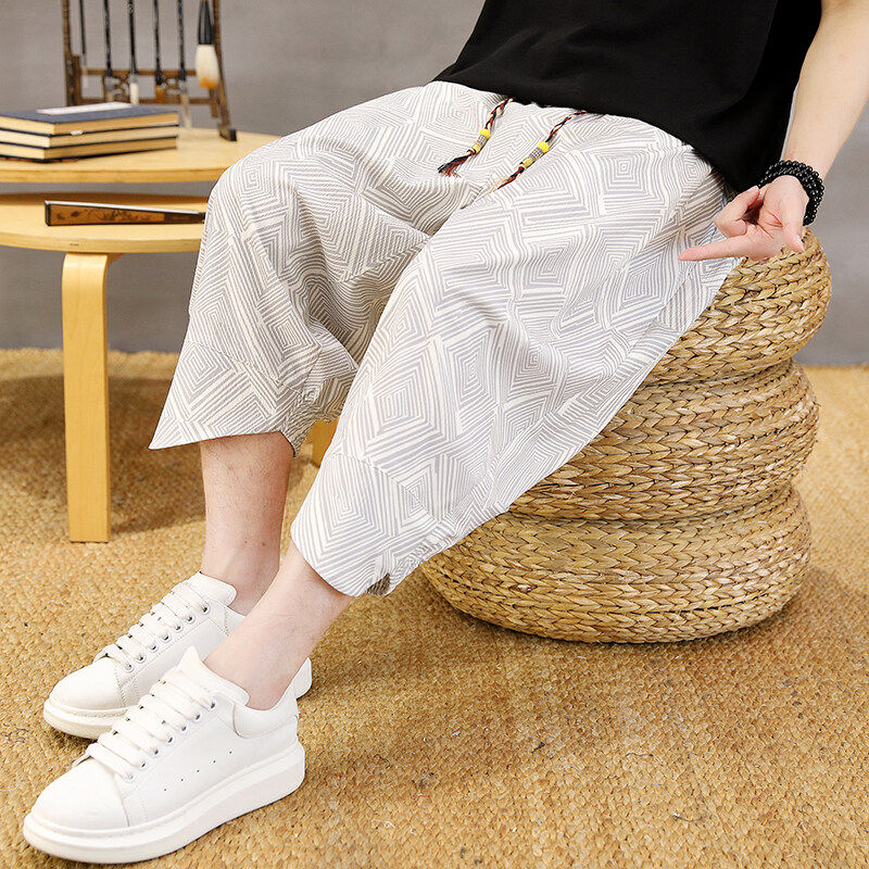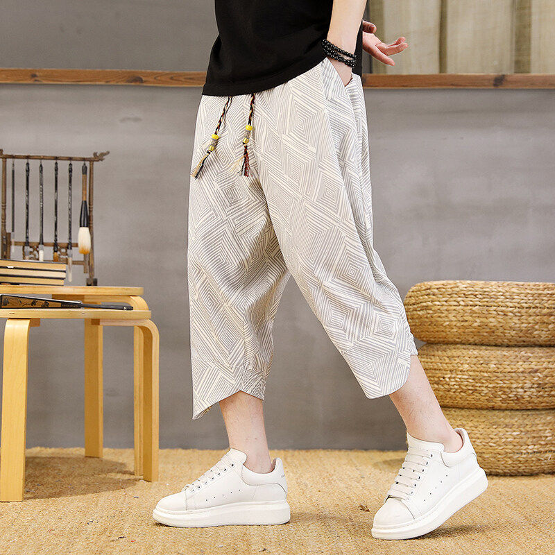 薄款冰丝七分裤男夏季高级感痞帅休闲短裤男款潮流宽松7分哈伦裤