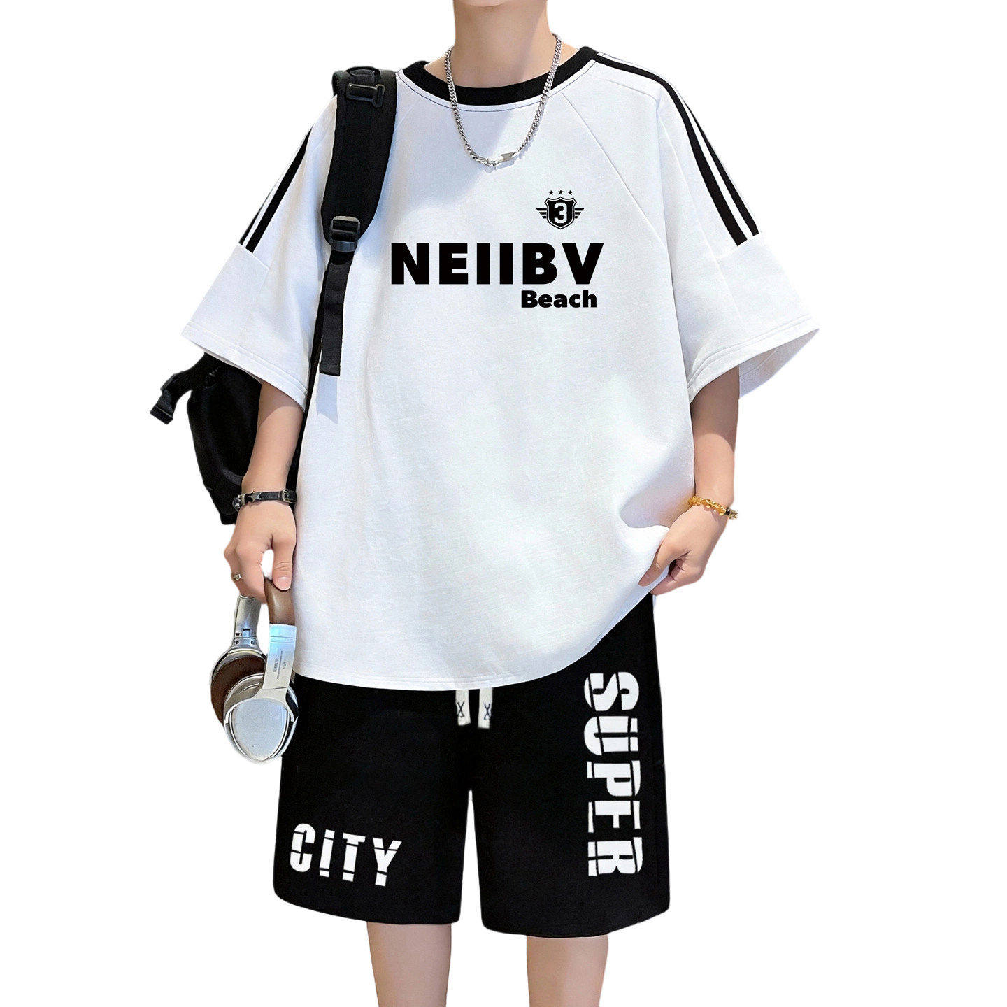 青少年短袖t恤套装男孩初高中学生纯棉半袖大童夏装运动衣服一套