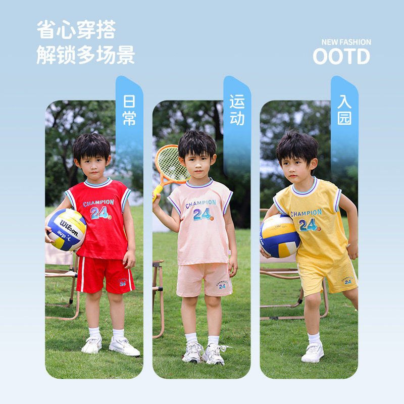 儿童夏装背心纯棉运动球衣童装套装婴儿篮球服宝宝男女童时髦衣服