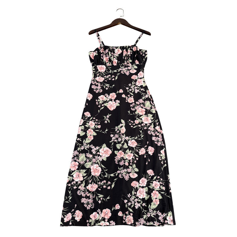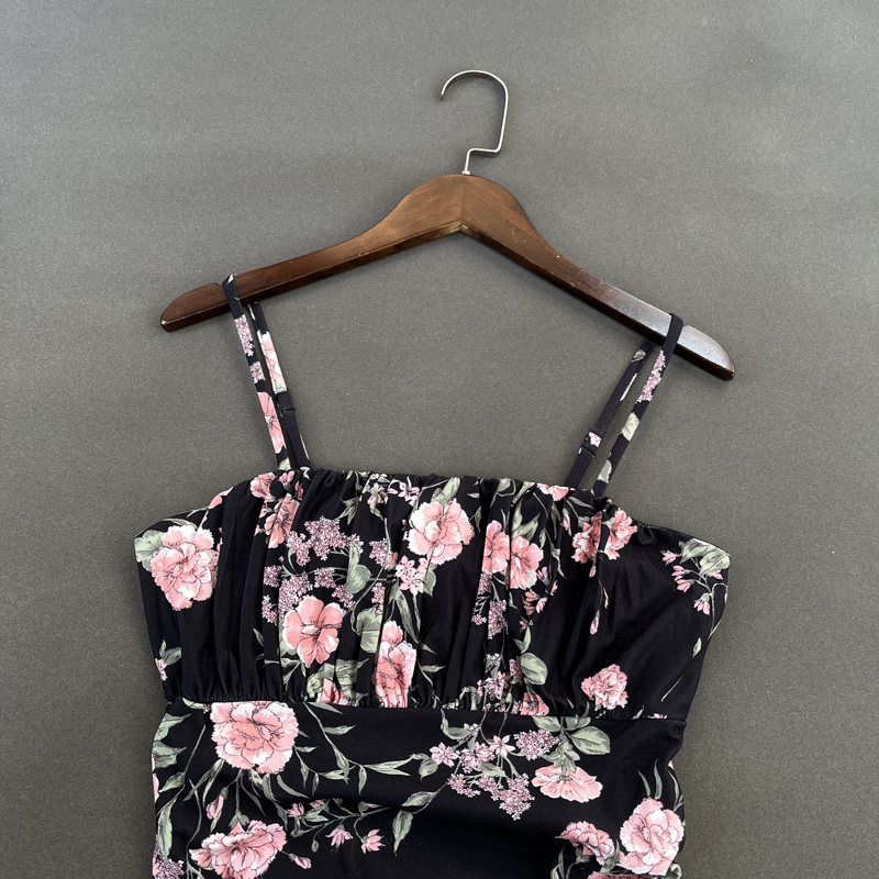 原 美国单 夏季复古碎花裙修身轻包臀中长款抹胸式吊带裙连衣裙女