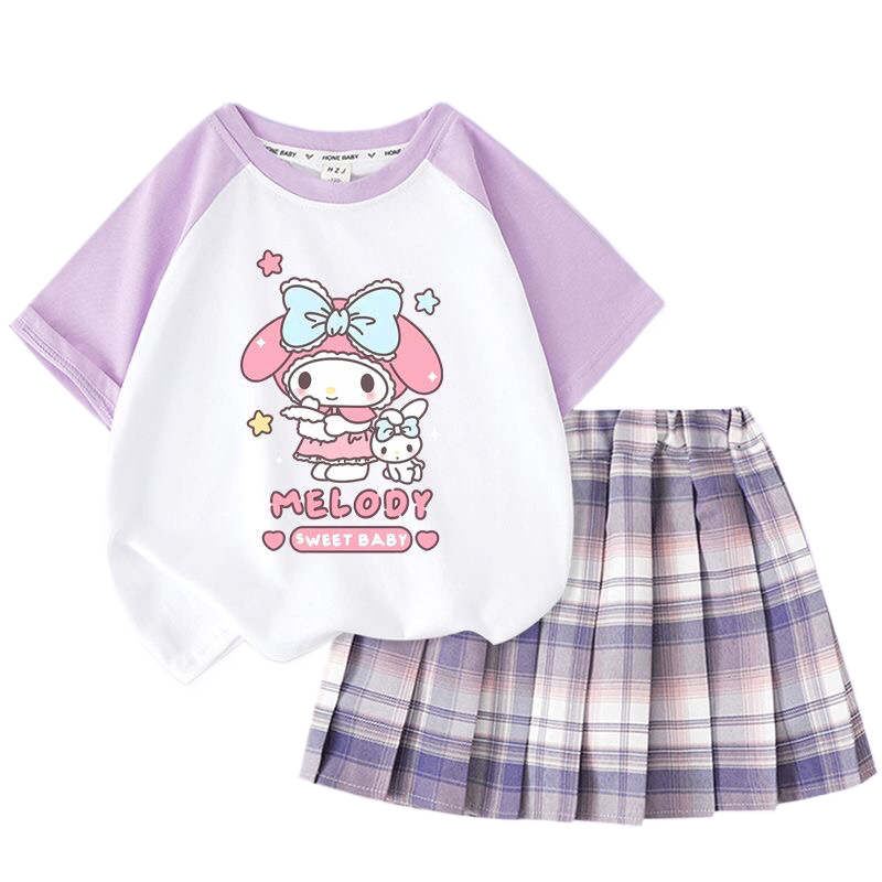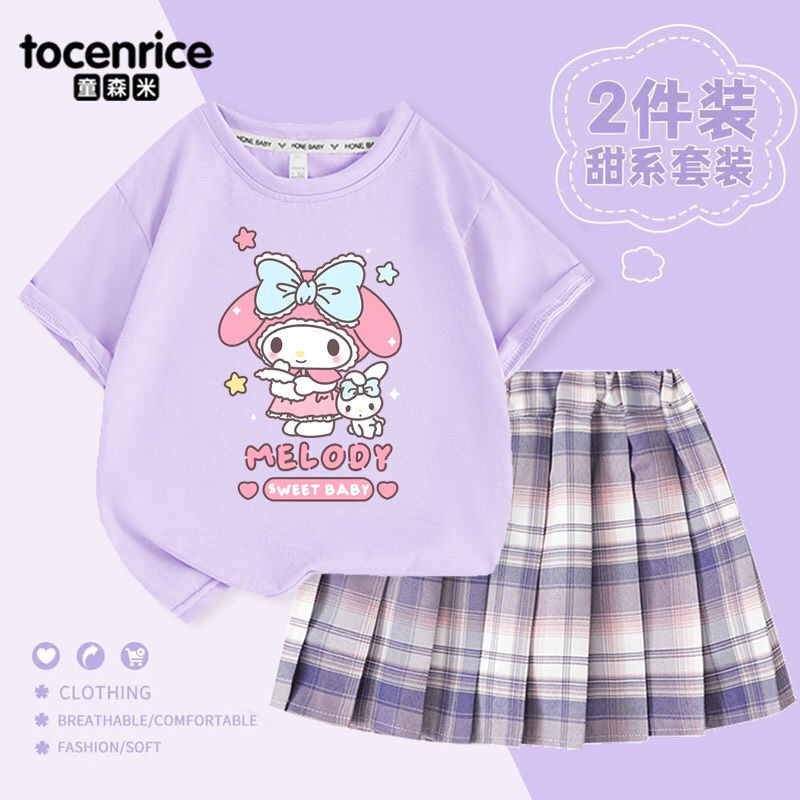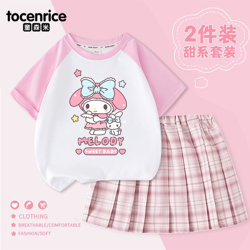 美洛蒂女童套装夏季2026新款中大童女孩学院风jk裙子体恤两件套潮