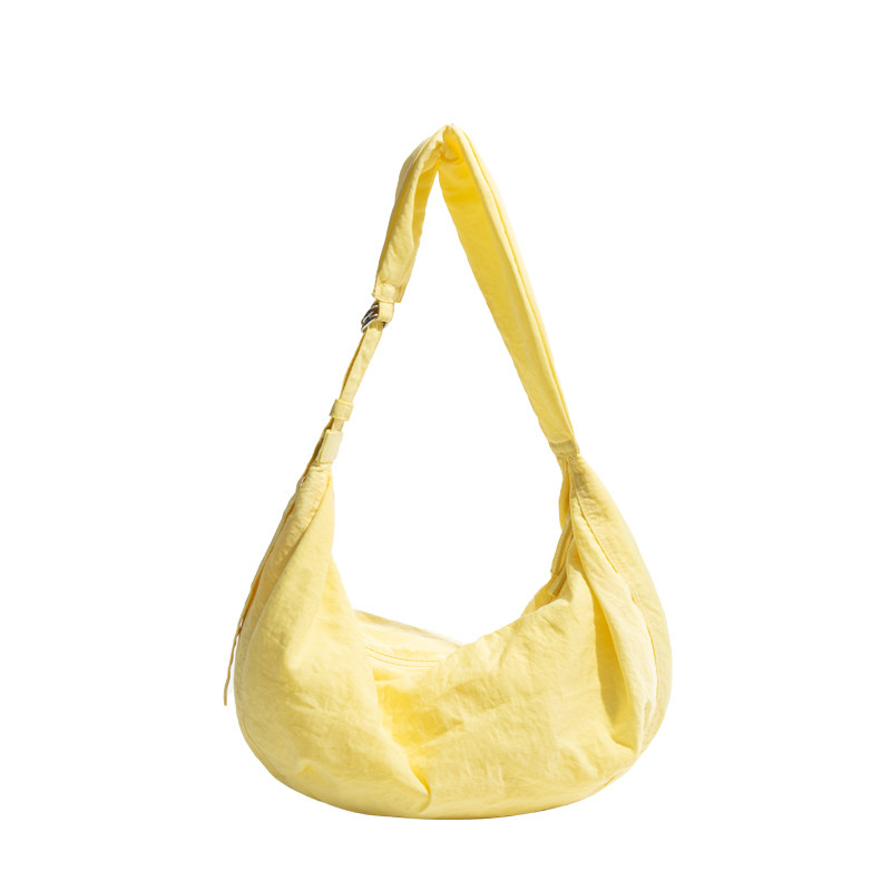 橙子少女韩系黄色简约饺子包通勤新款帆布包大容量斜挎包百搭月牙