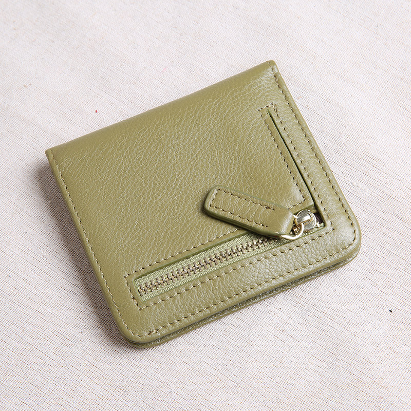 新款钱包女短款真皮两折拉链搭扣超薄小钱包小清新钱夹零钱包