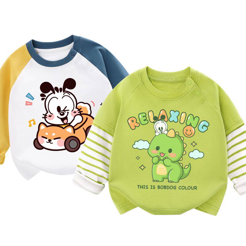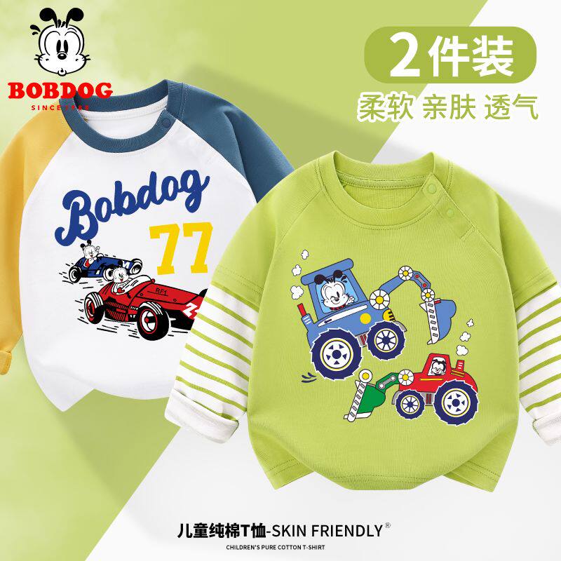 巴布豆男童长袖纯棉t恤薄款春季2026新款男宝宝上衣卡通儿童春装