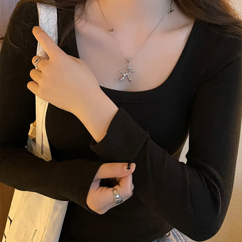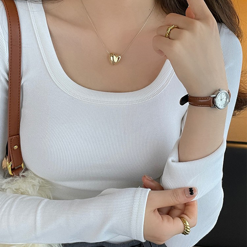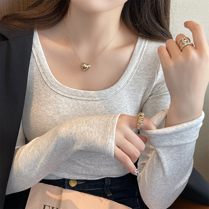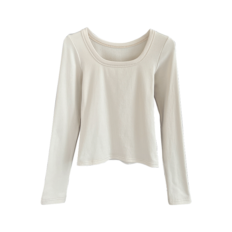 白色长袖T恤女内搭春夏季2026年新款方领打底衫修身磨毛显瘦上衣