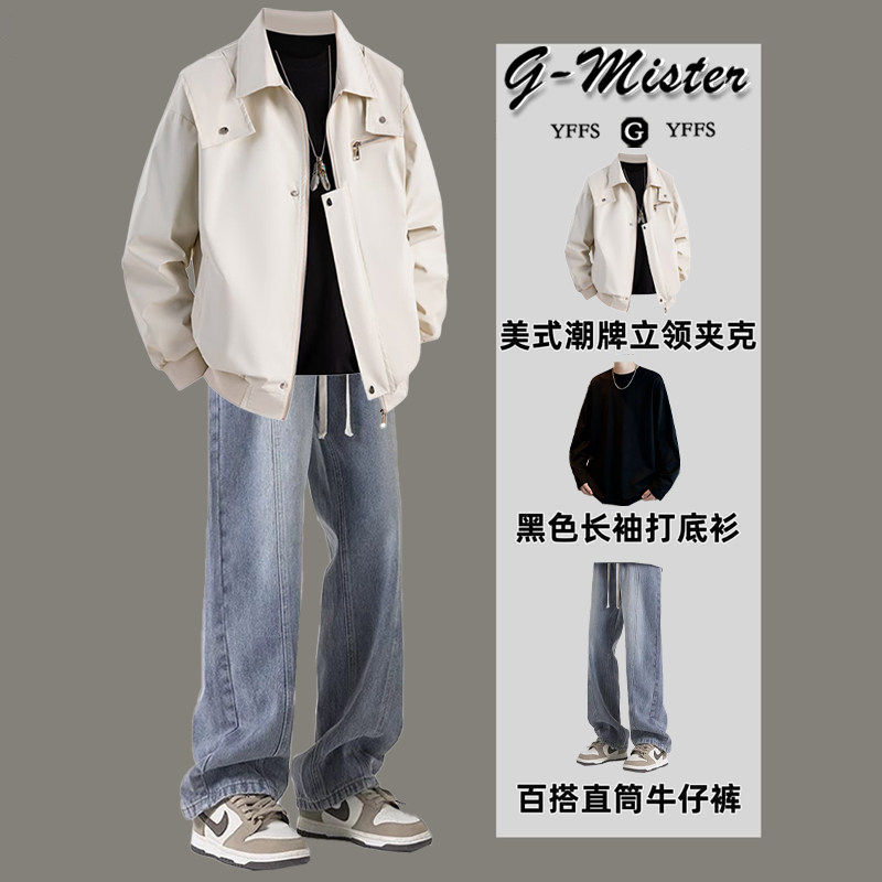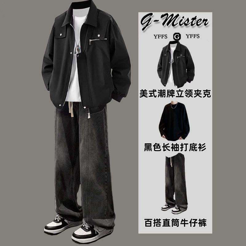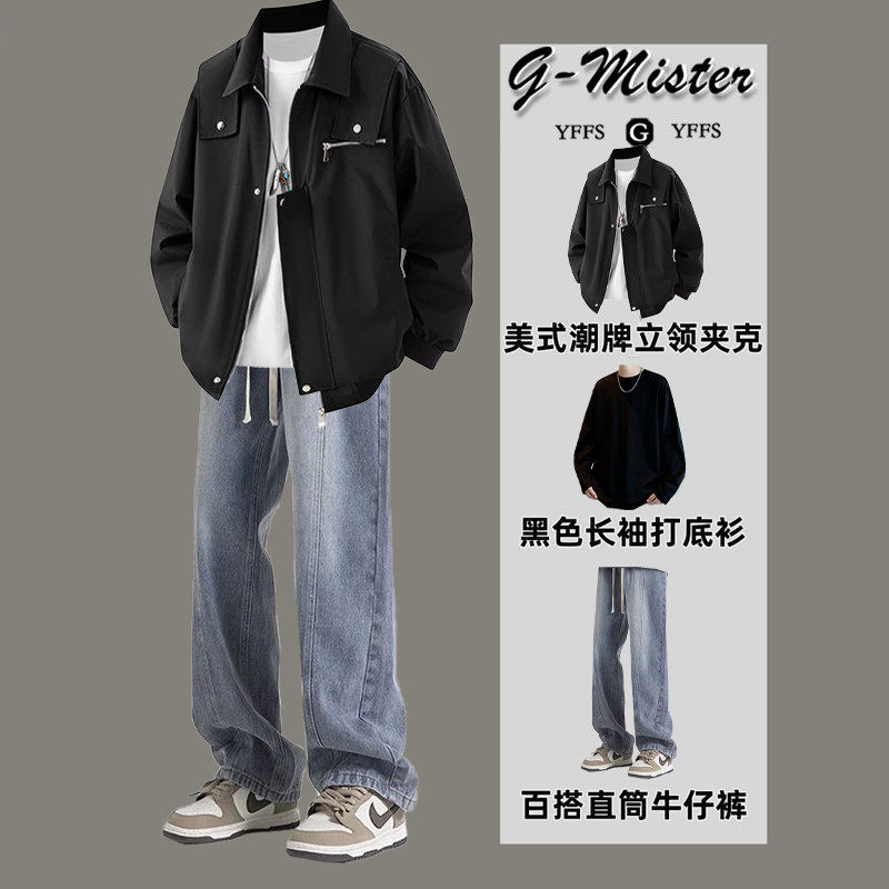工装外套男款春秋季2026新款潮牌高级感痞帅休闲翻领夹克冲锋衣男