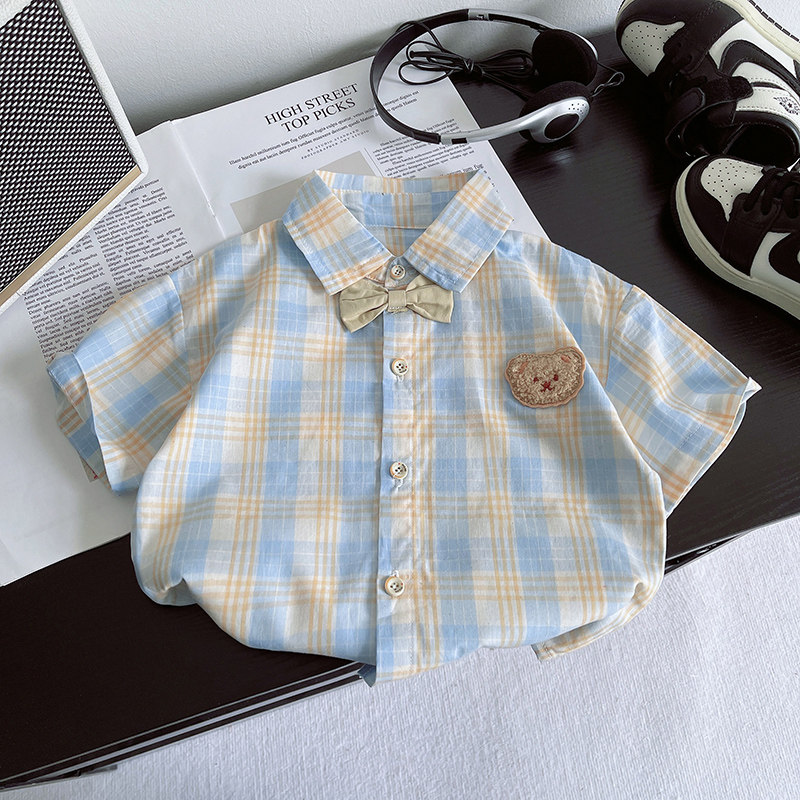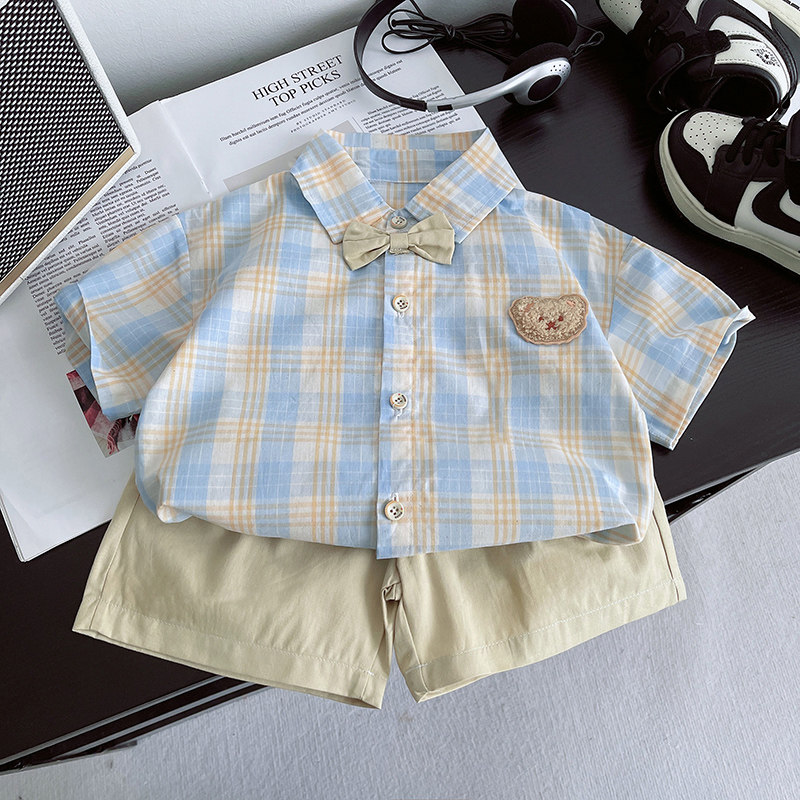 男童夏季套装新款儿童短袖衬衫洋气格子韩版宝宝夏装帅气两件套
