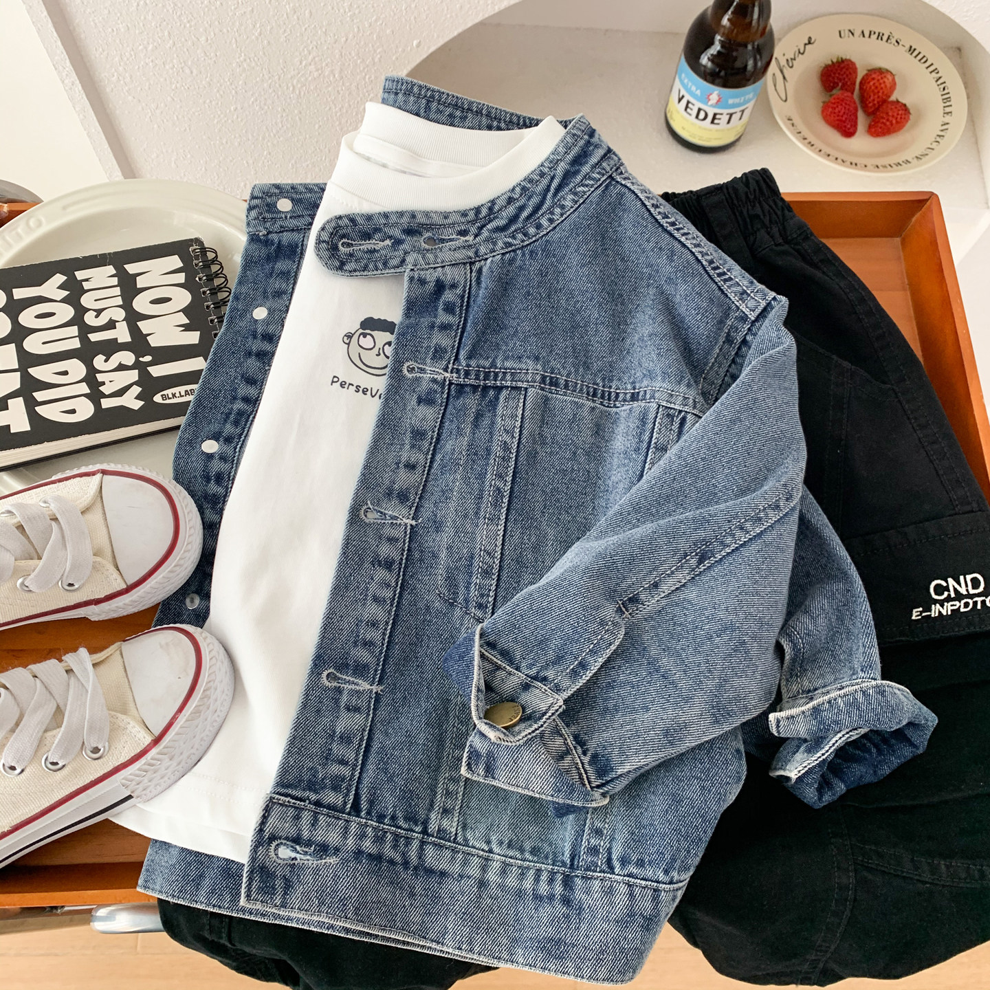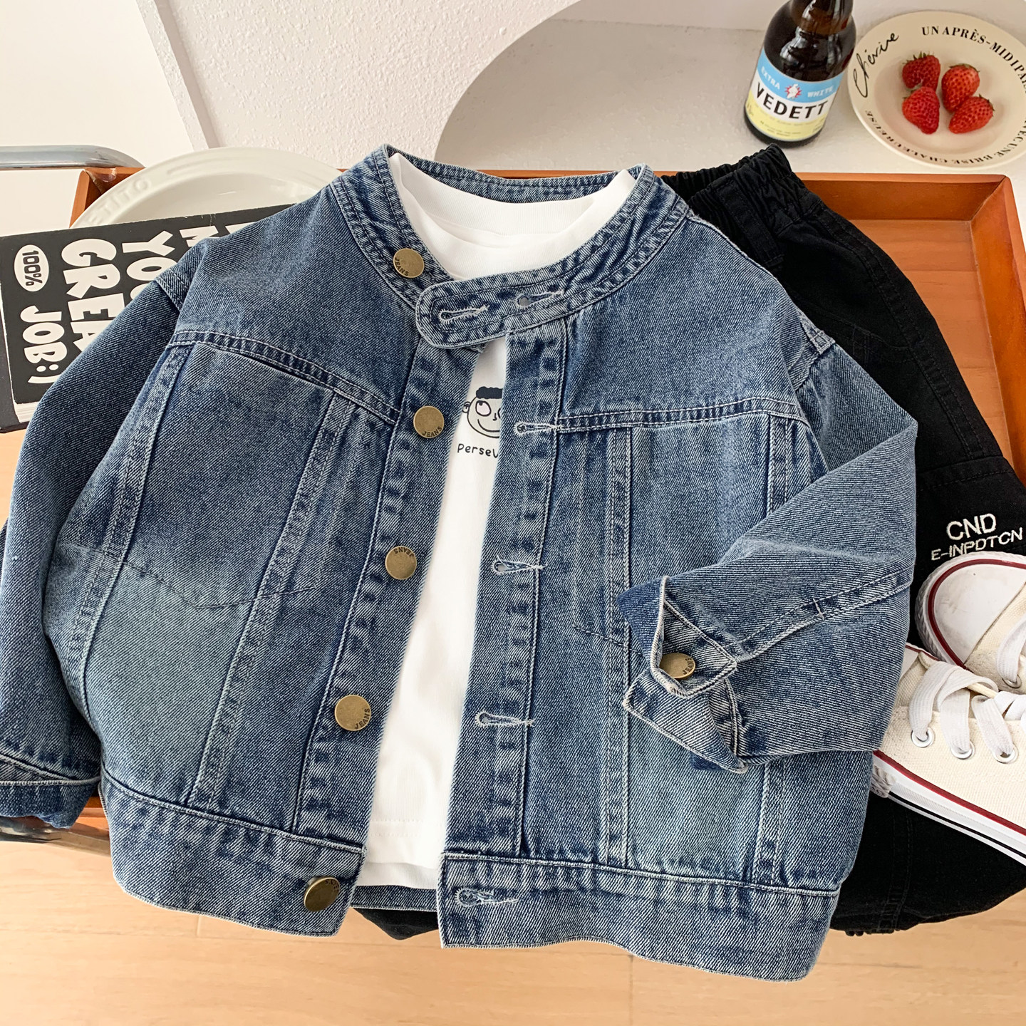 儿童春装牛仔外套2026新款男童春秋宽松夹克中小童洋气笑脸牛仔衣