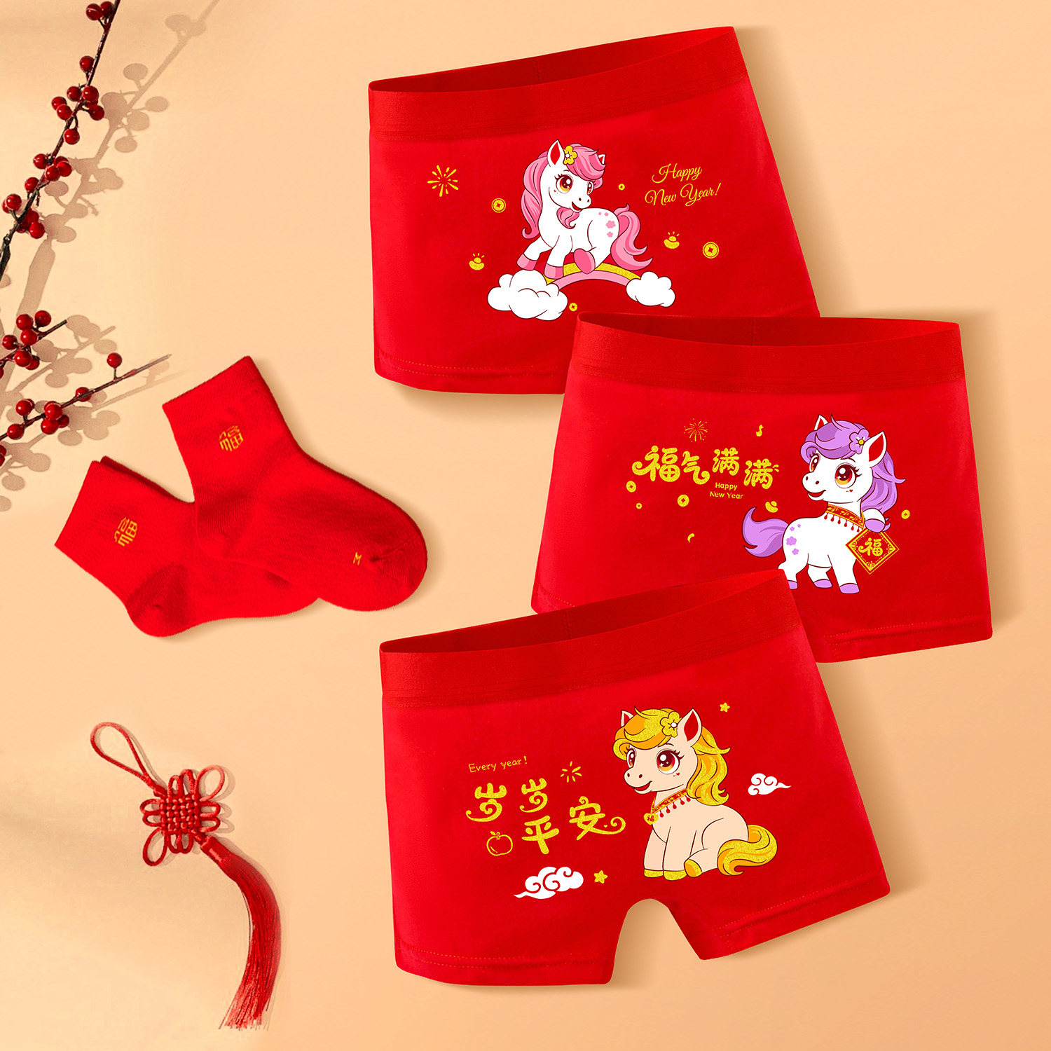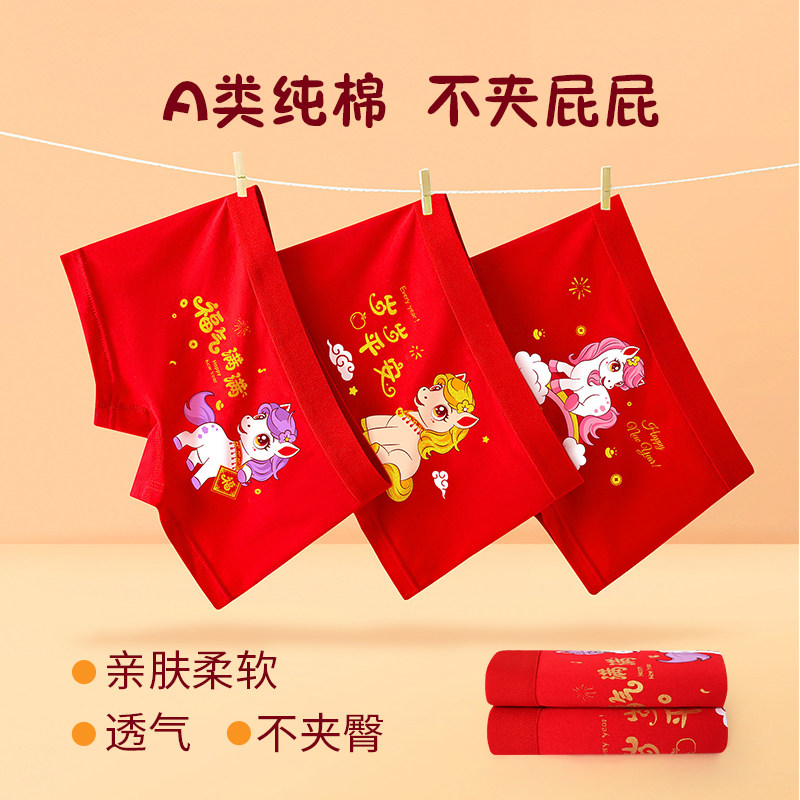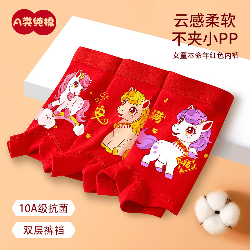 儿童红色内裤女童本命年马年纯棉短裤中大童四角12女孩13岁平角裤