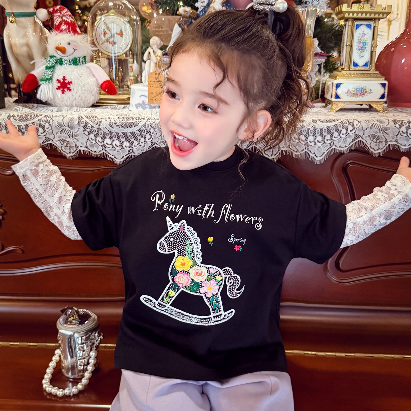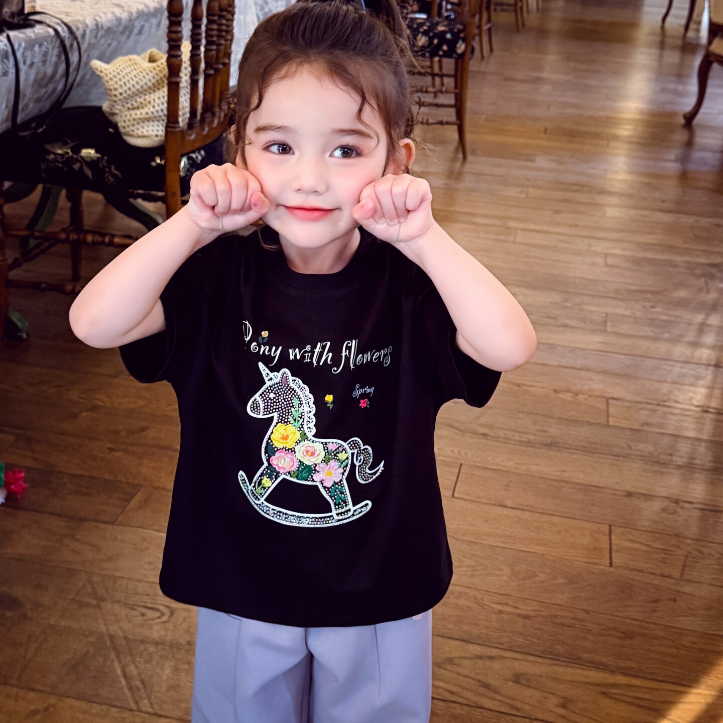 米米哈罗女童短袖T恤春装2026新款儿童韩版卡通上衣女孩半袖打底