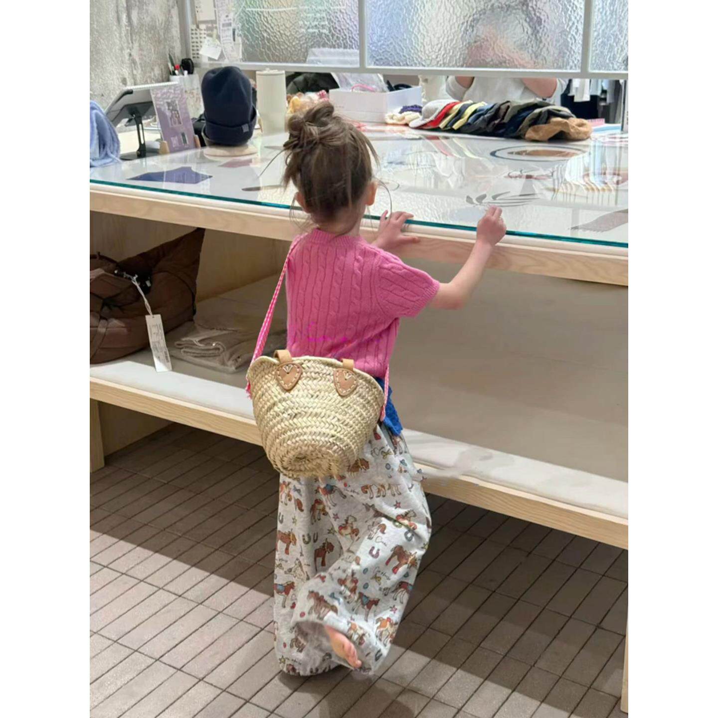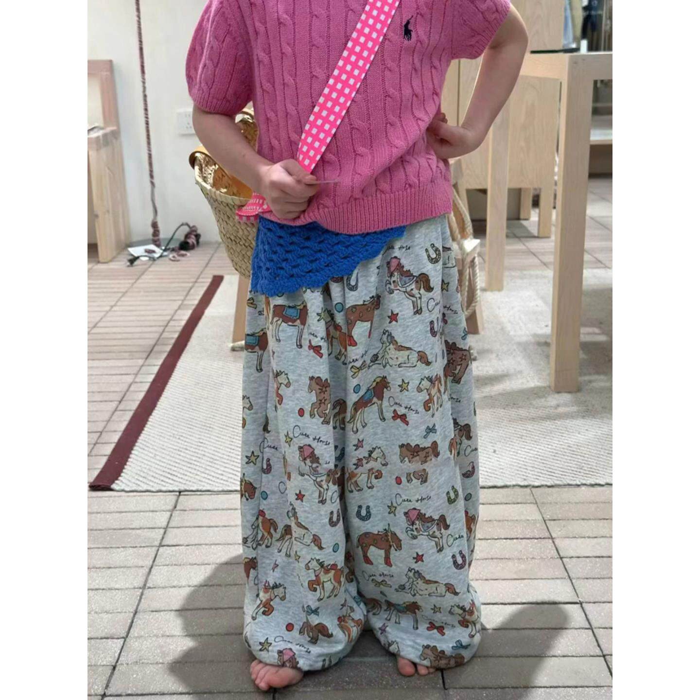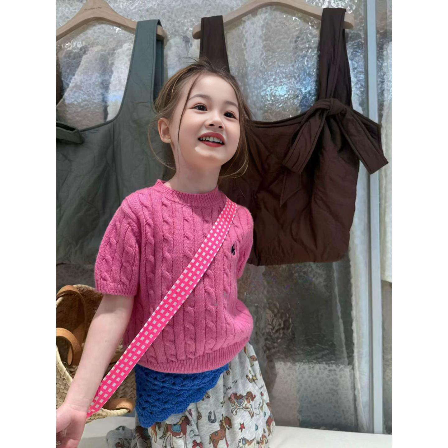 女童春装2026新款洋气时髦短袖针织上衣儿童套装卡通休闲阔腿裤子