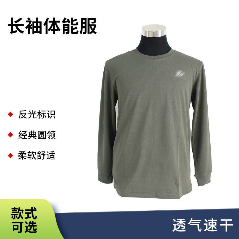 新式长袖体能训练服反光标识速干圆领长袖宽松跑步户外运动服