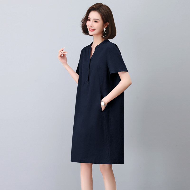 中年女士减龄连衣裙夏季薄款短袖高级感妈妈裙子夏装休闲中长裙子