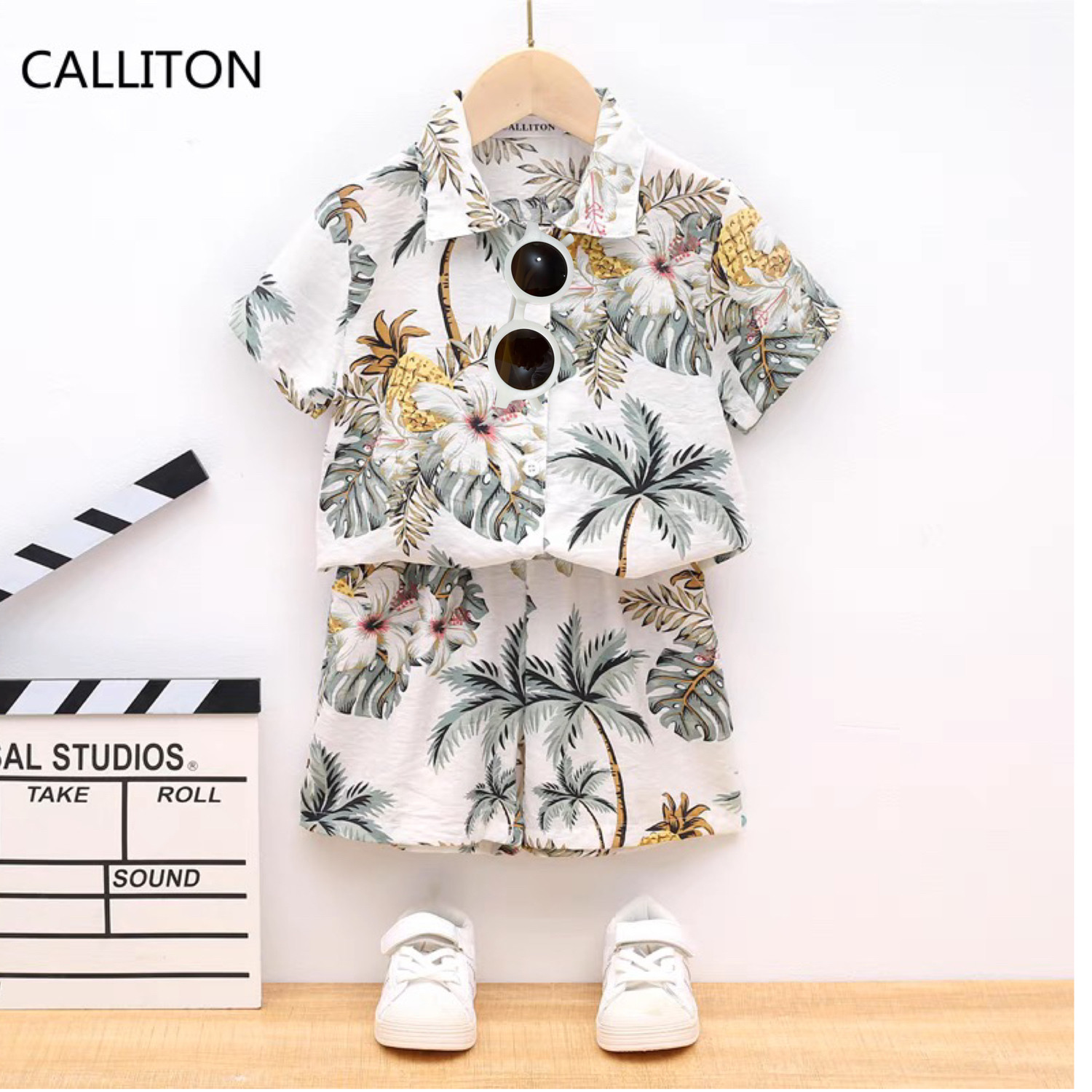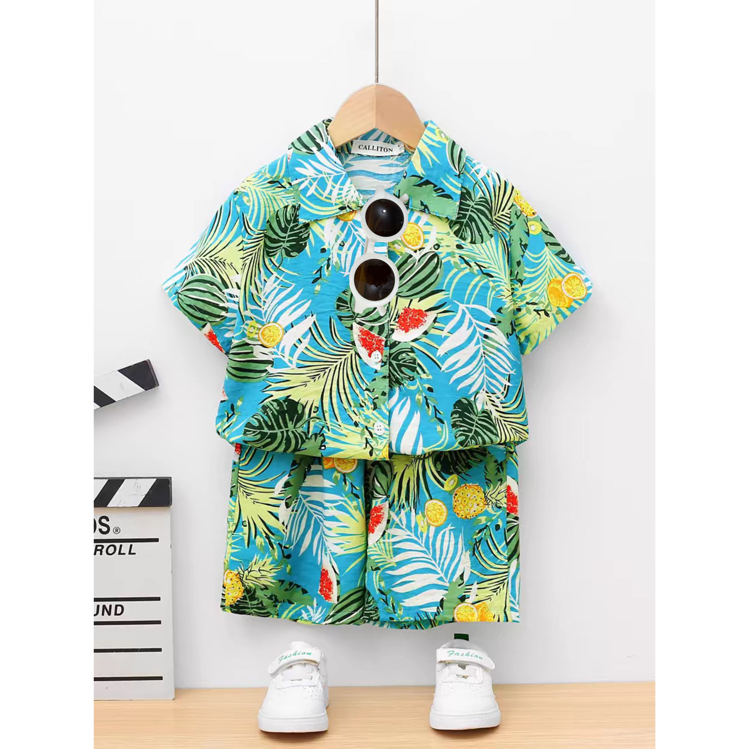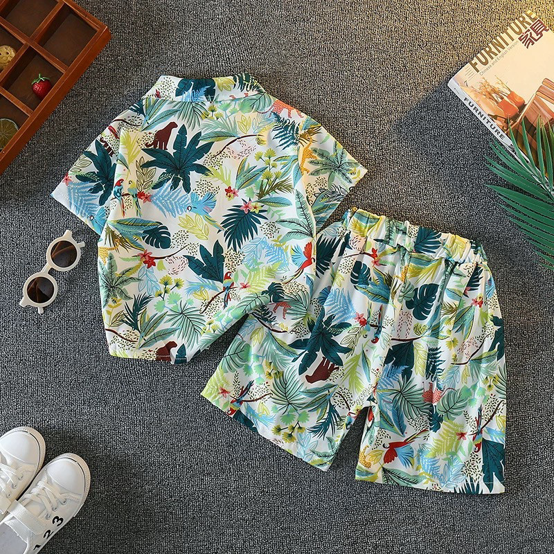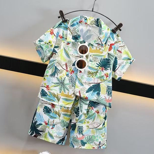 男童夏季套装洋气儿童沙滩短袖花衬衫2026新款时髦宝宝炸街薄衣服