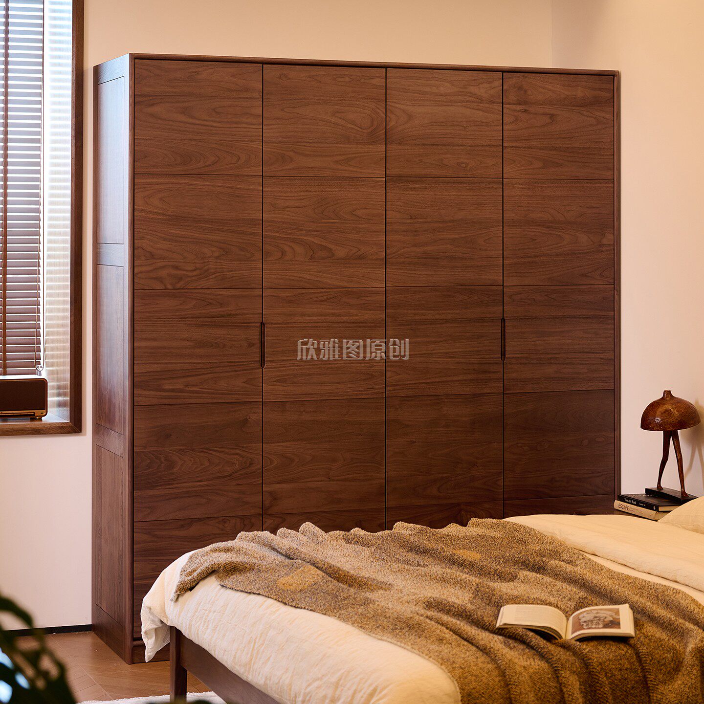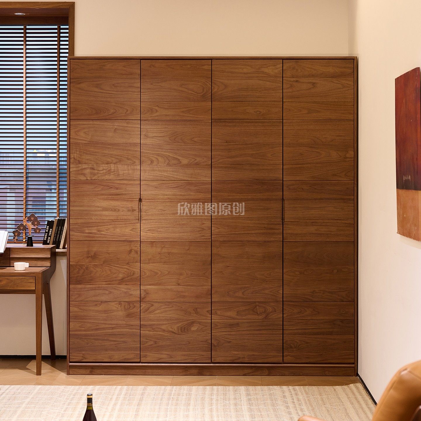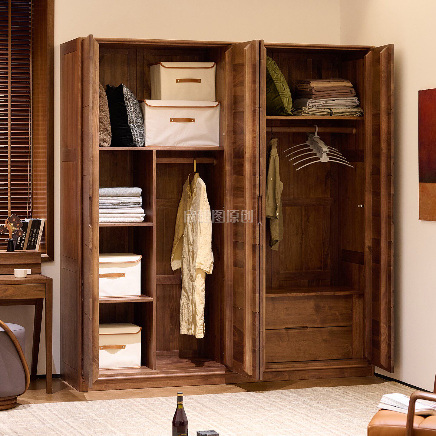 北美黑胡桃木衣柜实木家用原木全屋定制新中式别墅卧室衣帽间衣橱