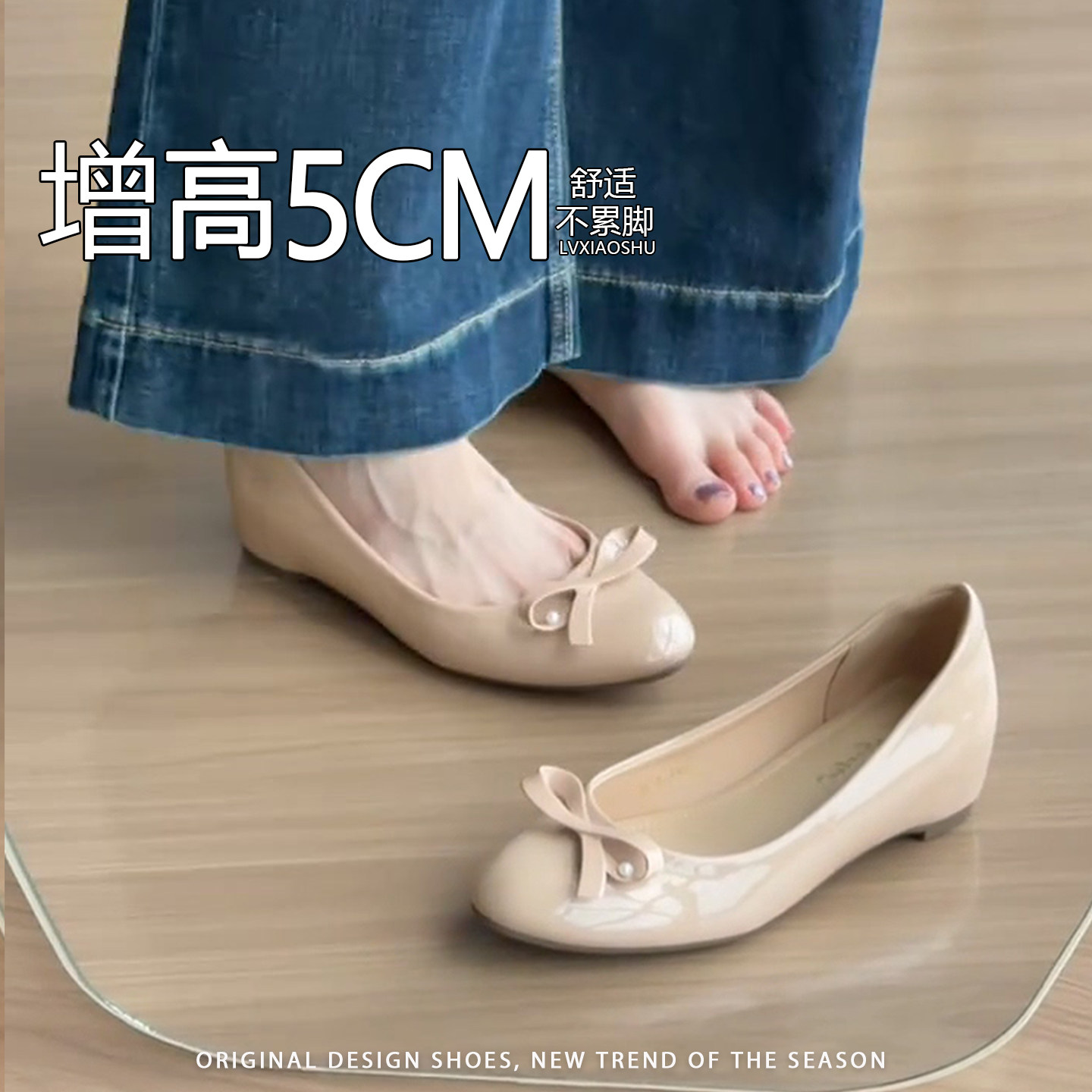 法式小个子内增高圆头浅口单鞋女2026新款蝴蝶结优雅气质玛丽珍鞋
