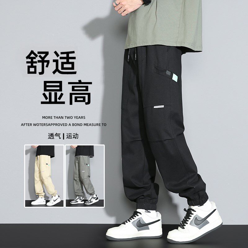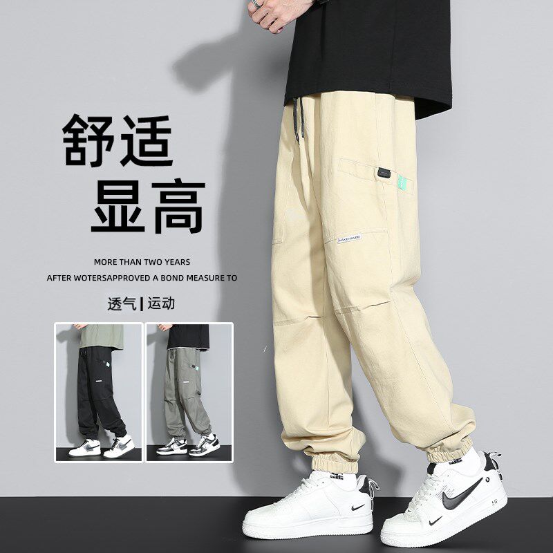 夏季薄款工装裤子凉感男孩初中学生运动裤青少年大童纯棉休闲长裤