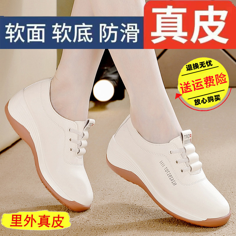 品牌真皮软底软面单鞋2026年新款春季平底防滑妈妈鞋百搭休闲鞋女