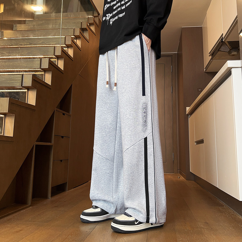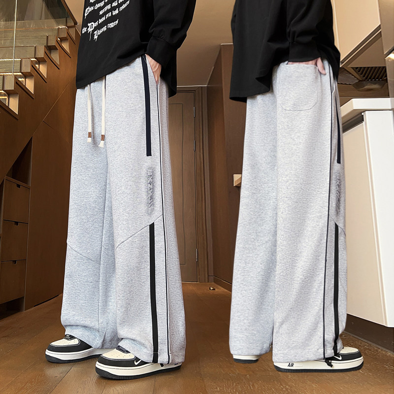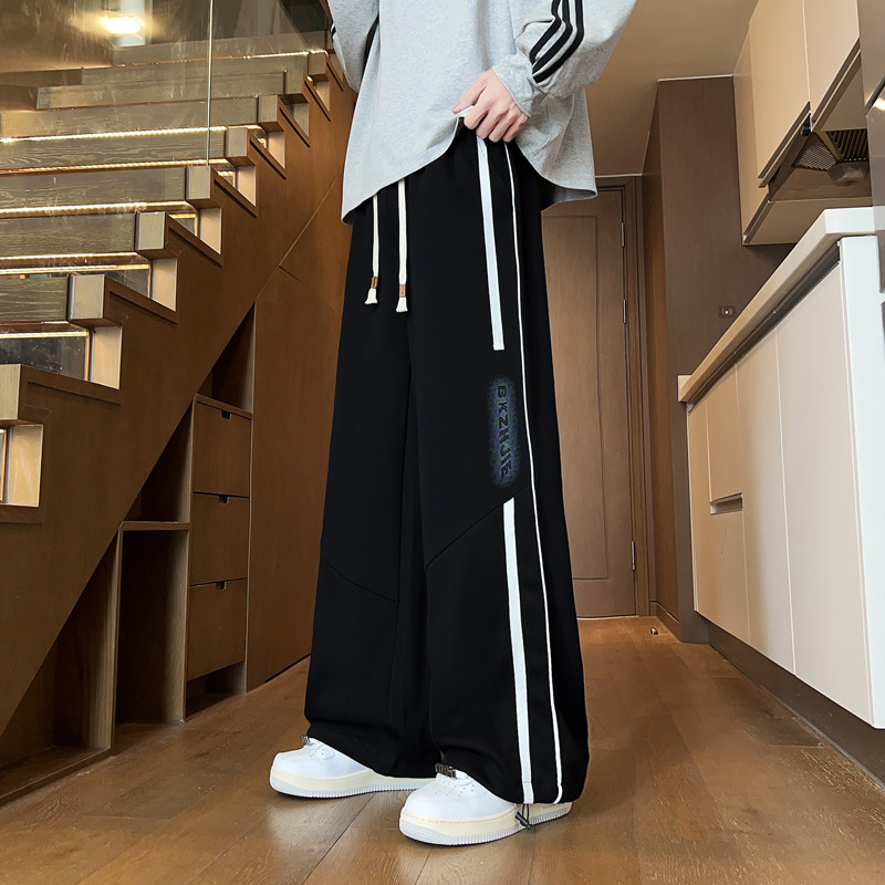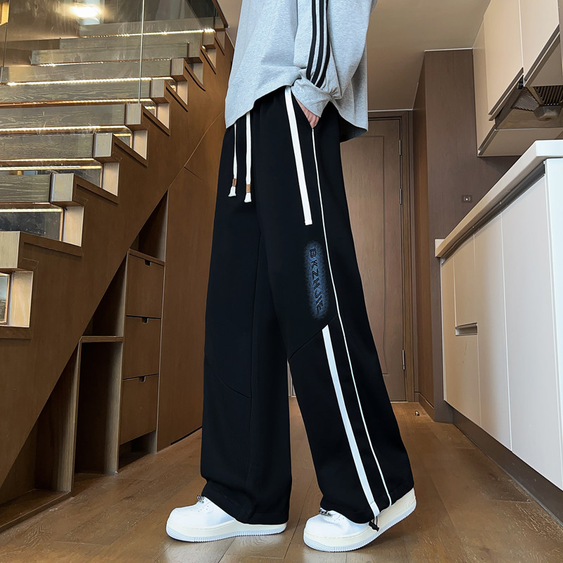 运动裤子男士春秋季潮牌宽松直筒休闲裤男青少年酷帅阔腿弯刀长裤