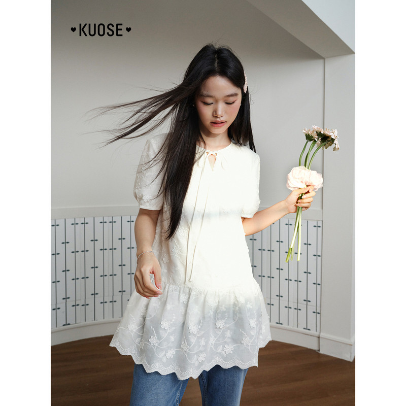 311线报网描述:圆领设计、绑带设计、绣花肌理