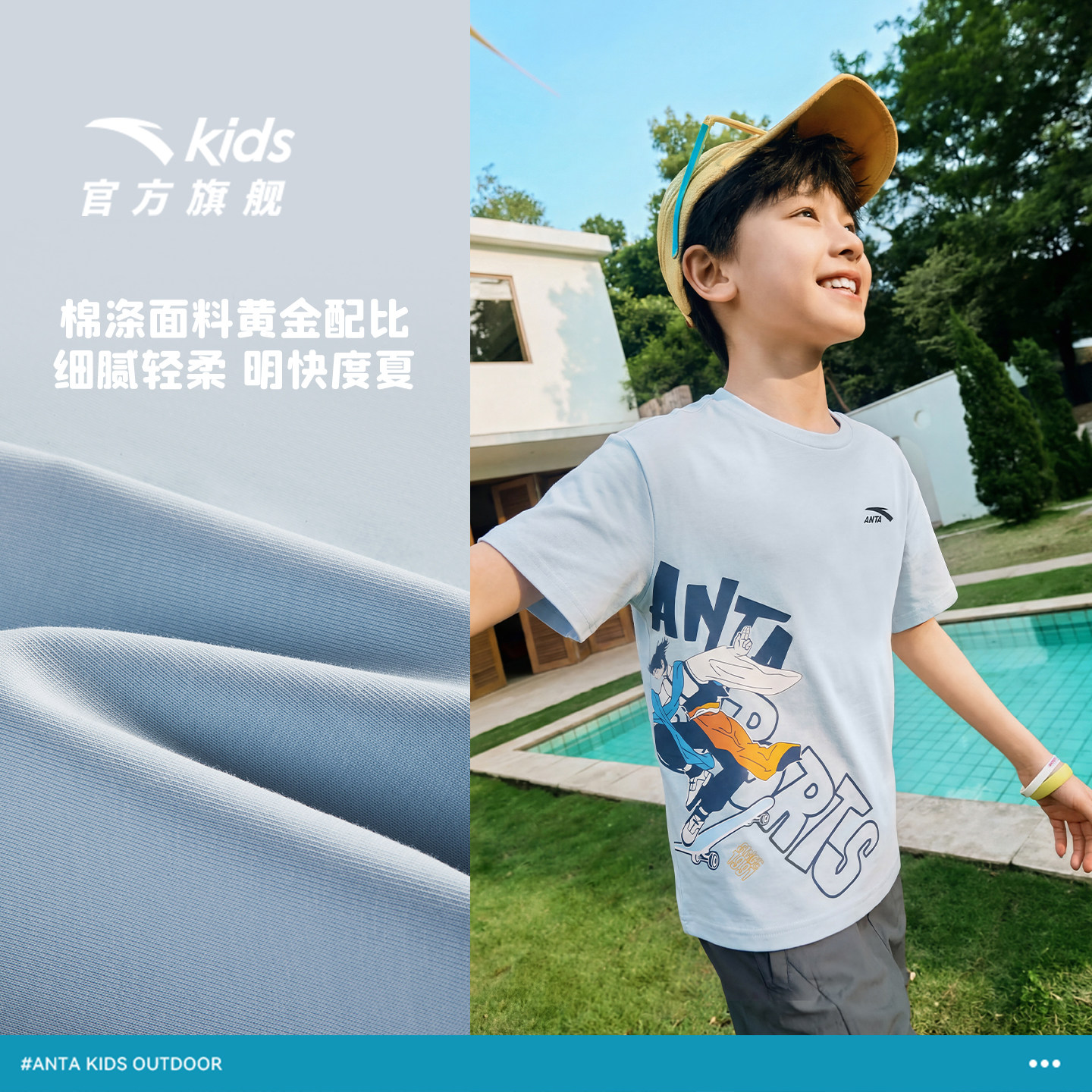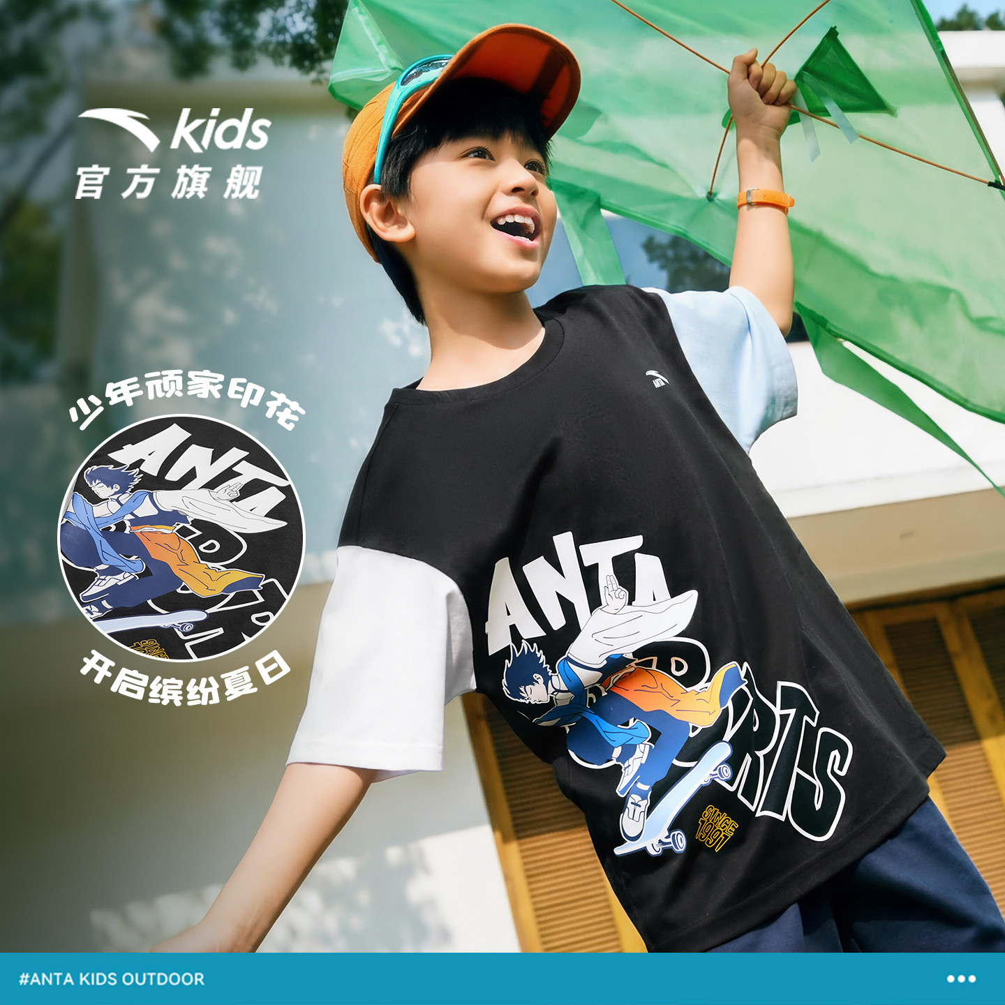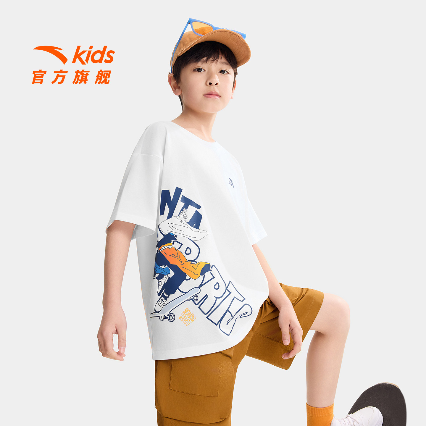 少年顽家安踏儿童短袖2026夏季新款透气男童棉T恤青少年打底衫潮