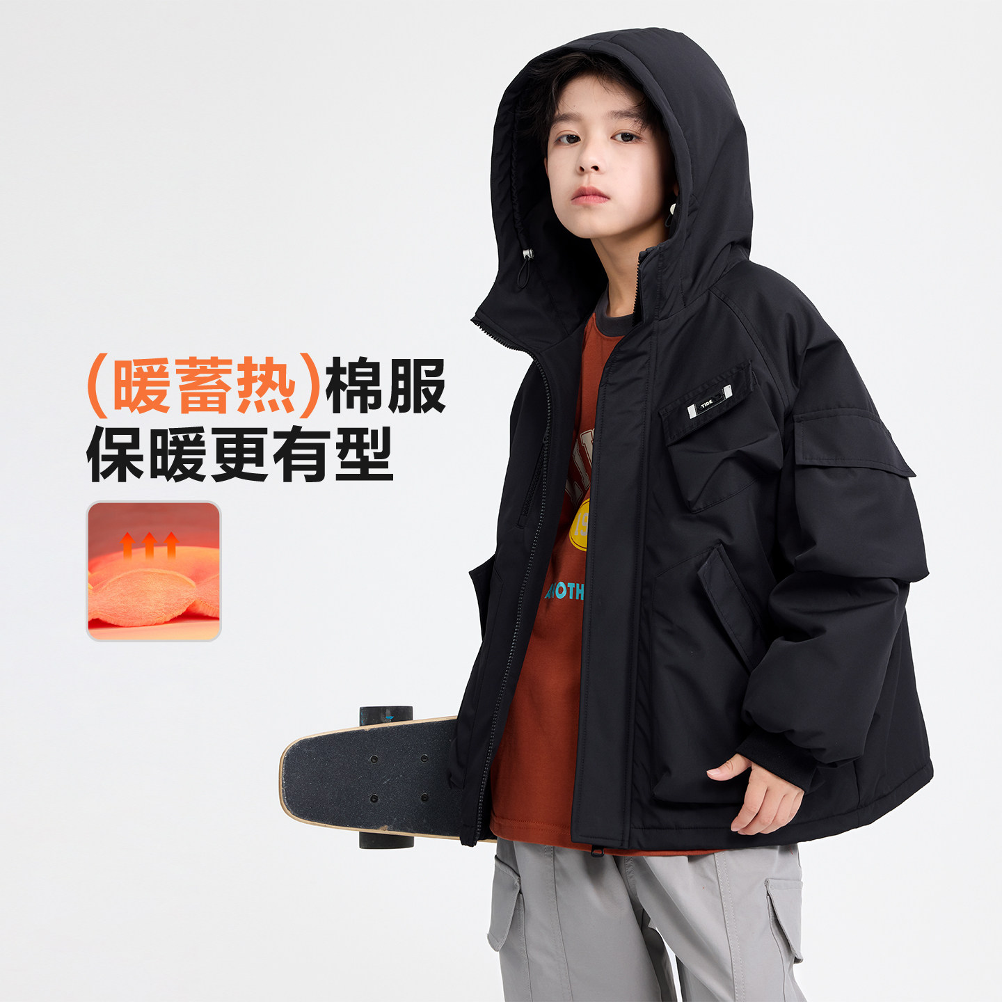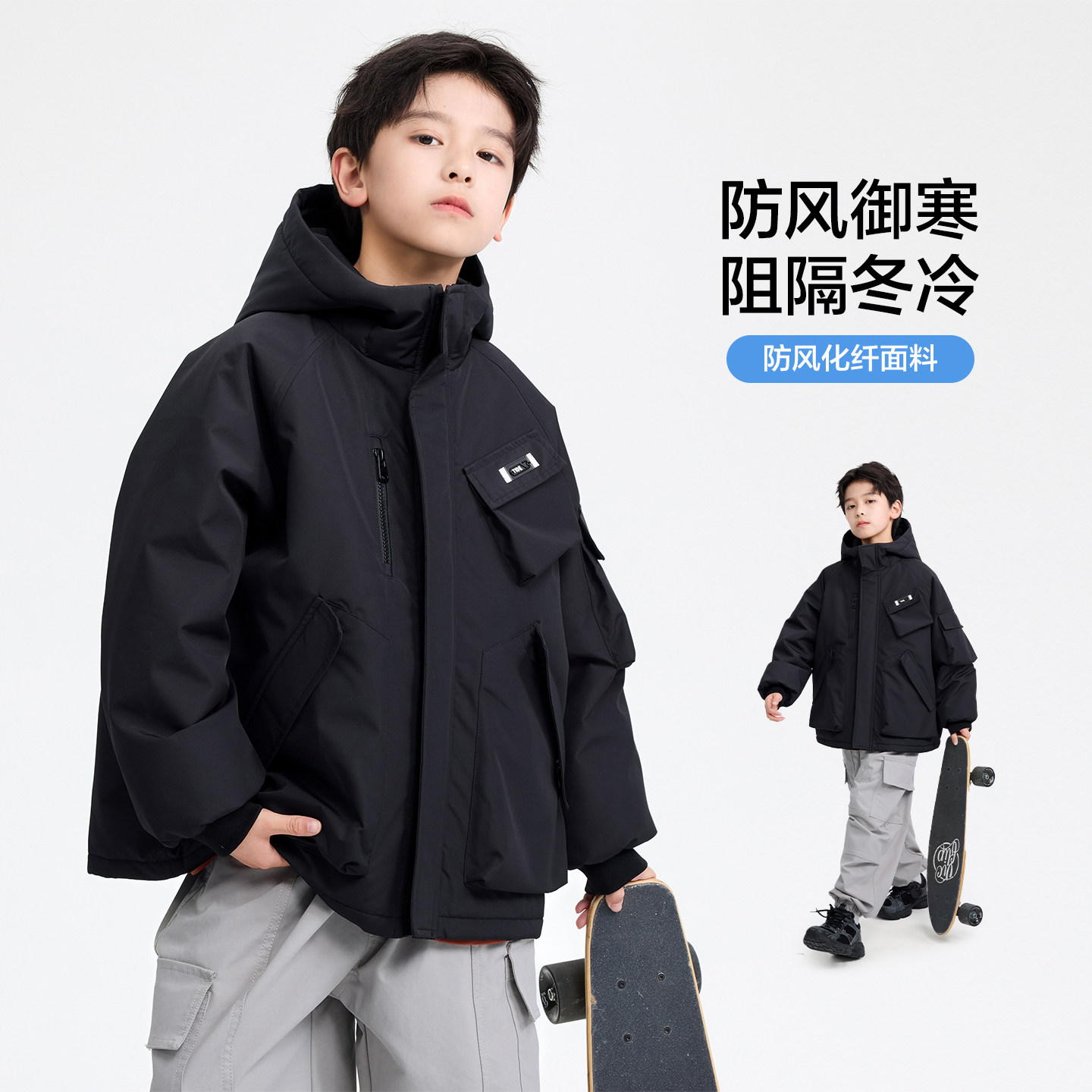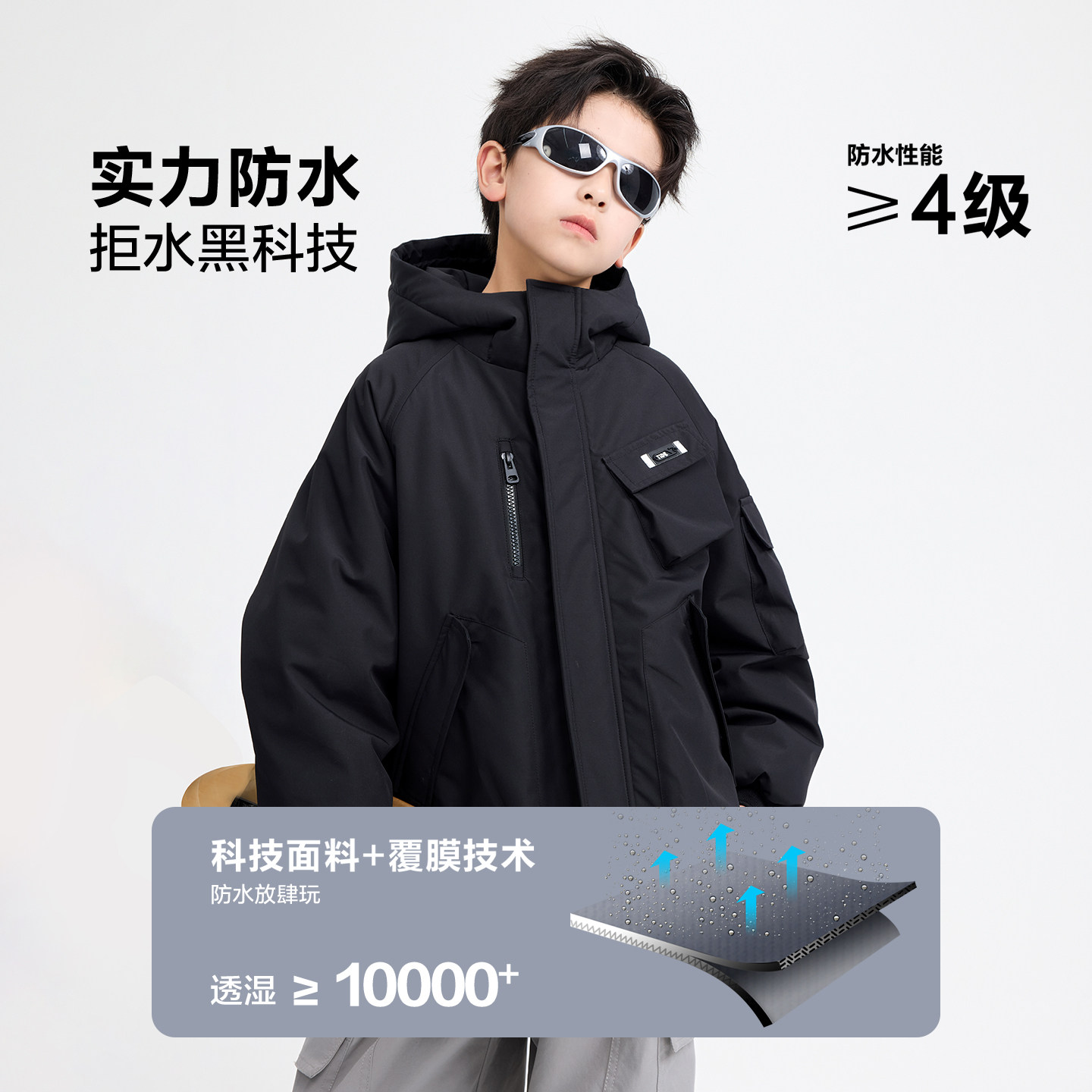 男童冬装户外防水连帽冲锋衣棉服2026新款青少年儿童运动夹棉外套