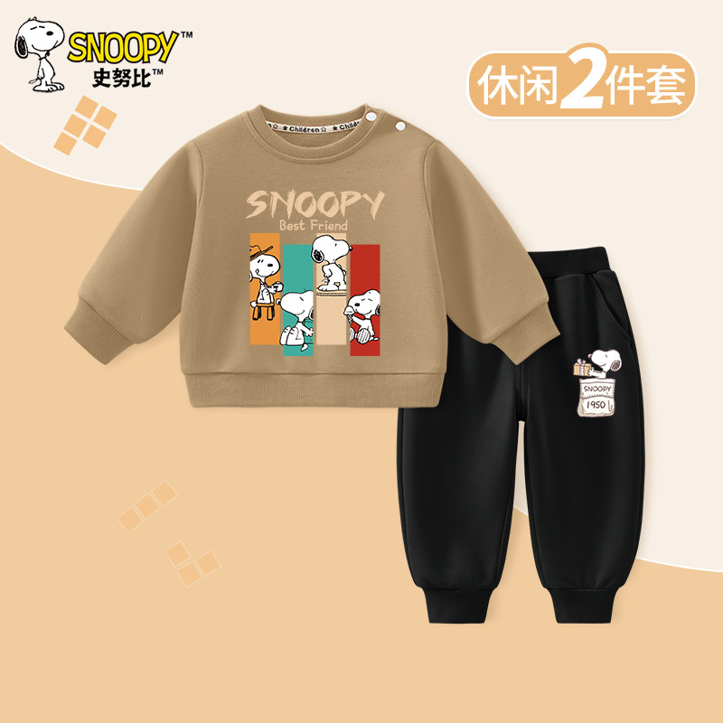 史努比童装男童春秋套装2026新款儿童运动服宝宝卫衣洋气婴儿春装