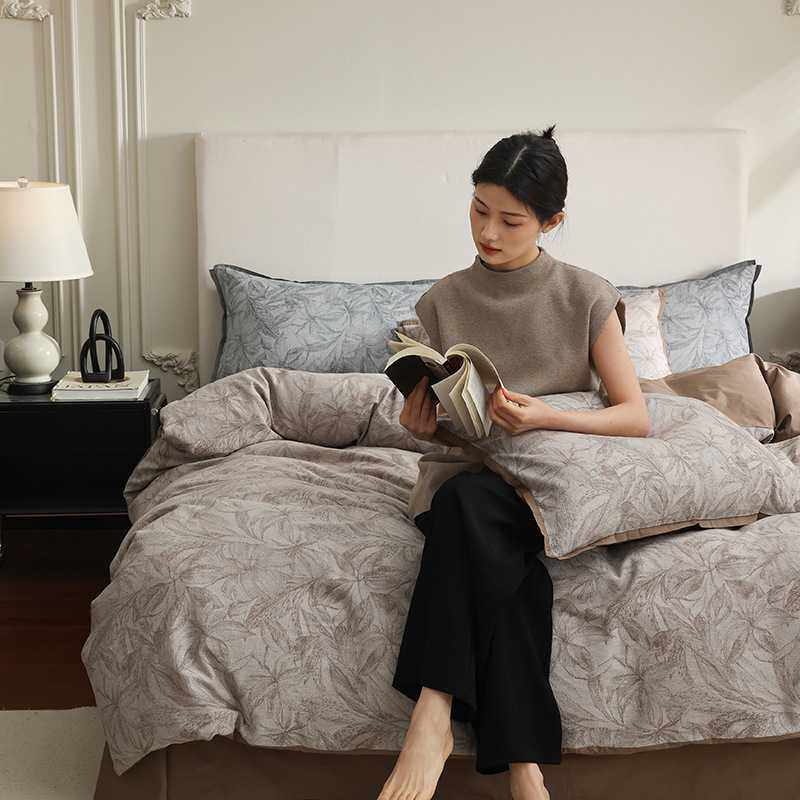 2025新款复古高级感床单被套绿色春夏季床上用品美拉德1.8m四件套